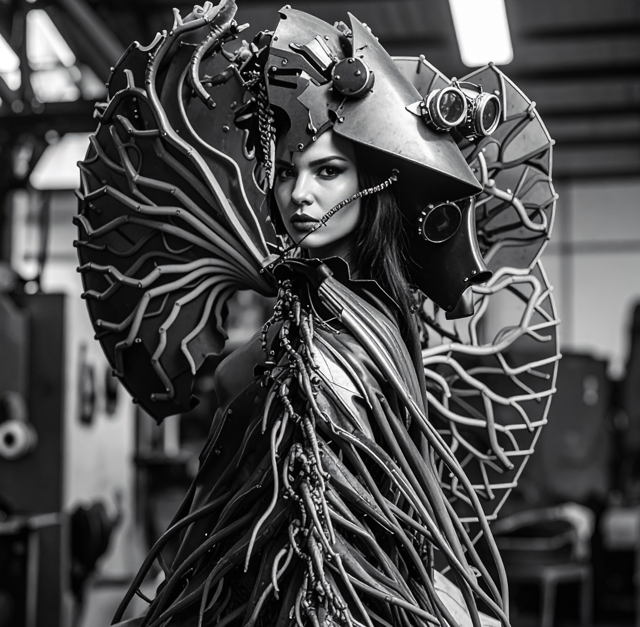 Sculptuur Vrouw Model Kleding Harnas Zwartwit Digitalekunst Kunst Art Contemporaryart Grafiek