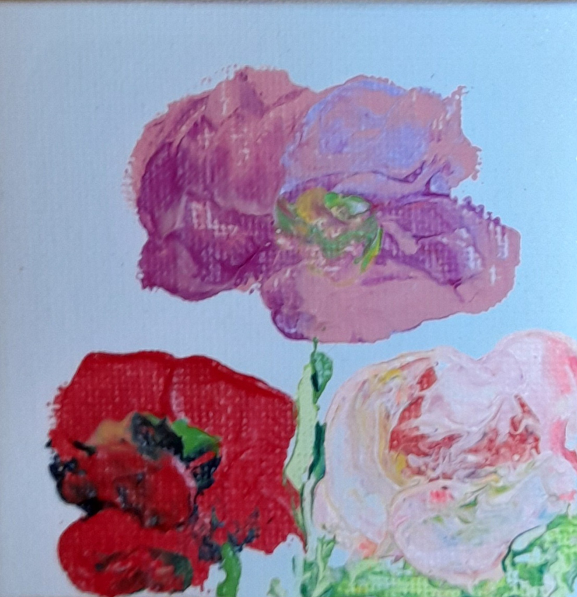 Door haar zoektocht van kleur en lichtinval, het experimenteren met andere materialen brengt Karin een impressie van abstracte tot stand. Zo probeert zij de sfeer en intimiteit van dat moment vast te leggen op doek.