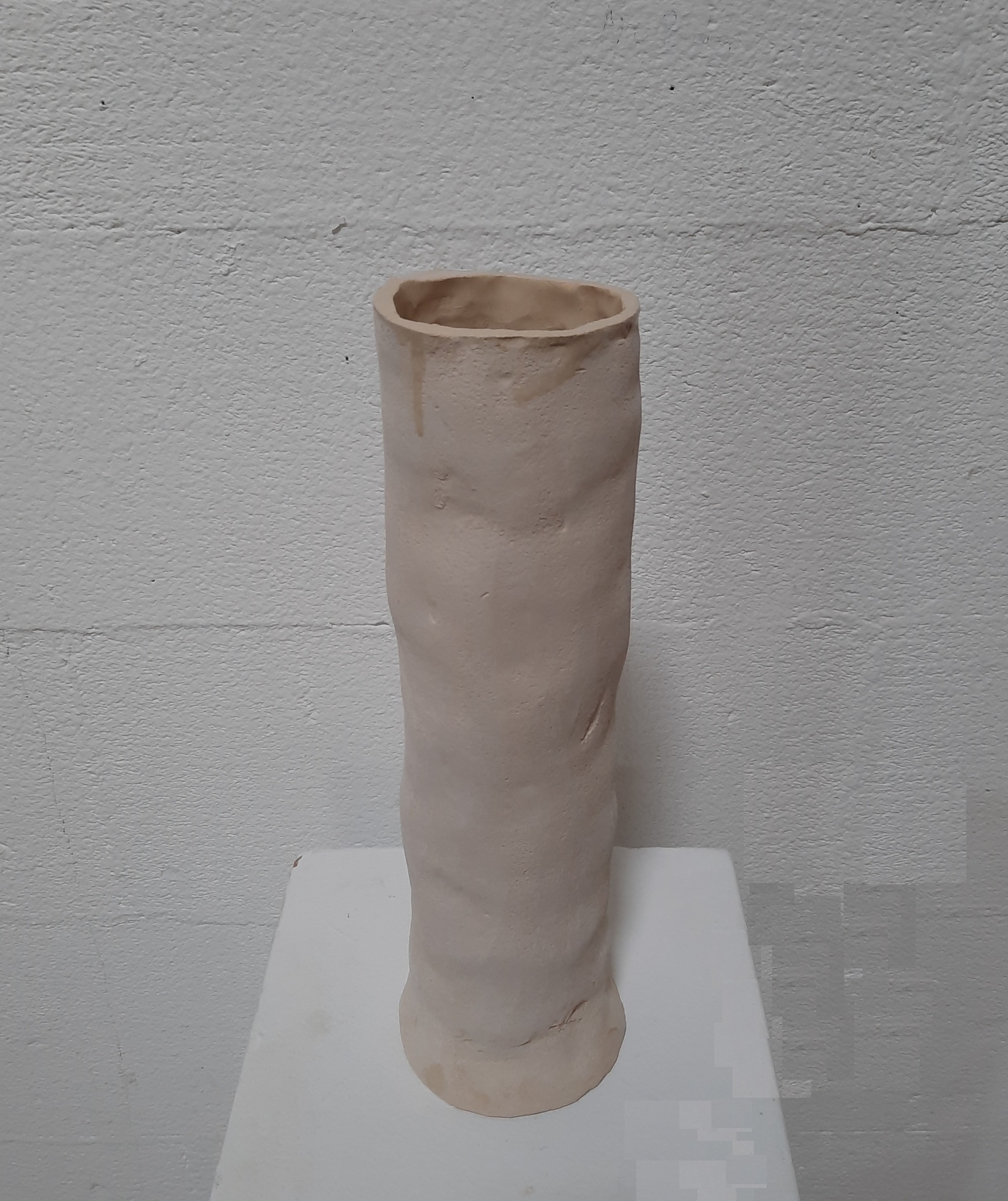 100-Vazen-project – Aardewerk, geglazuurd - proces onderzoek - Alle vazen zijn handgevormd, opgebouwd uit ringen. De vazen zijn cilindervormig en minimaal 30 cm hoog. De vazen lijken elk een eigen karakter te hebben. Hoe verhouden ze zich tot elkaar en tot de ruimte waar ze staan?