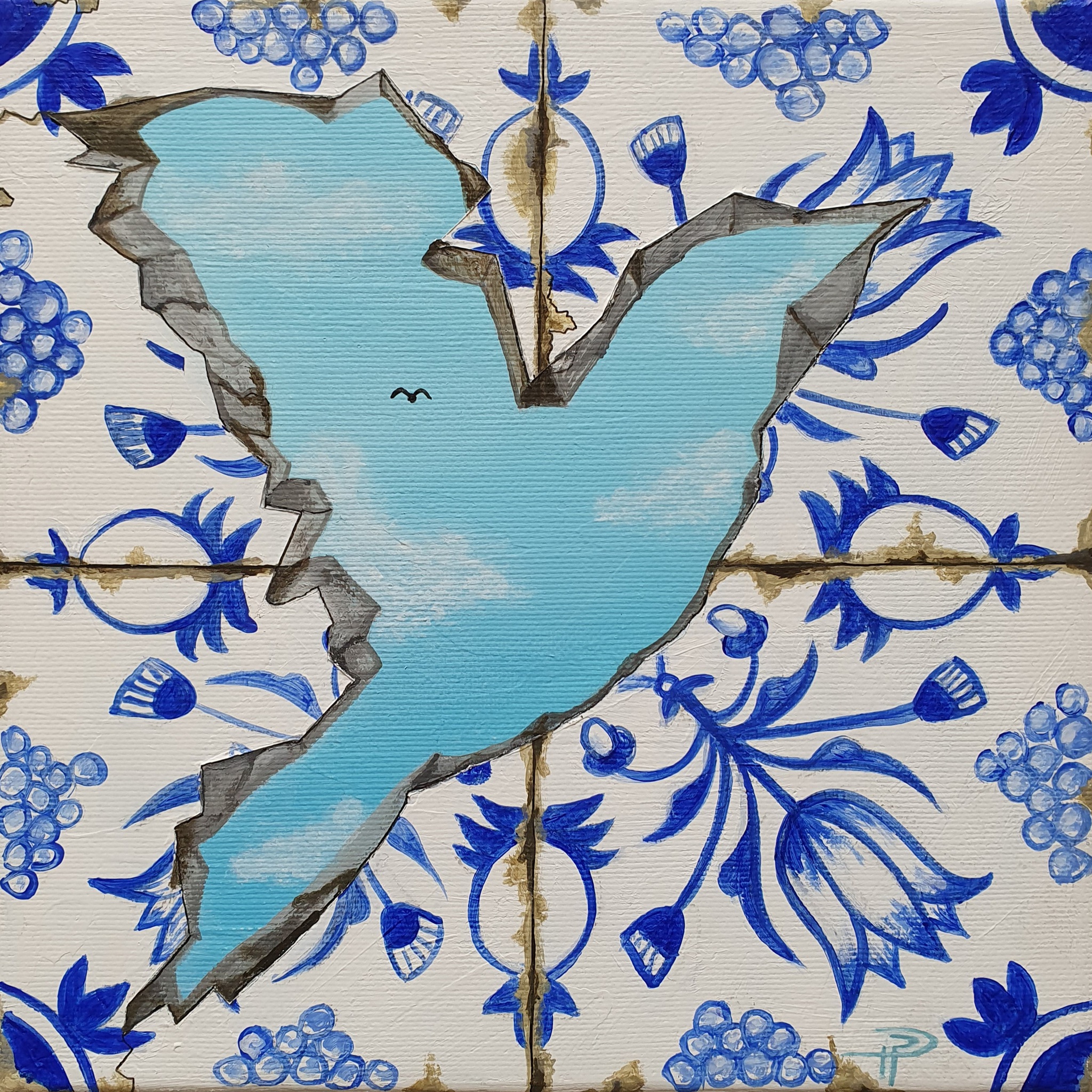 Het tegeltje verbeeldt mijn Nederlandse afkomst. De vogel is uit de tegel bevrijd, vliegend in de vrijheid, zoals ook ik een levende steen ben. Ben jíj los van je achtergrond? 1Petrus 2:5 laat u ook zelf als levende stenen gebruiken voor de bouw van een geestelijk huis.