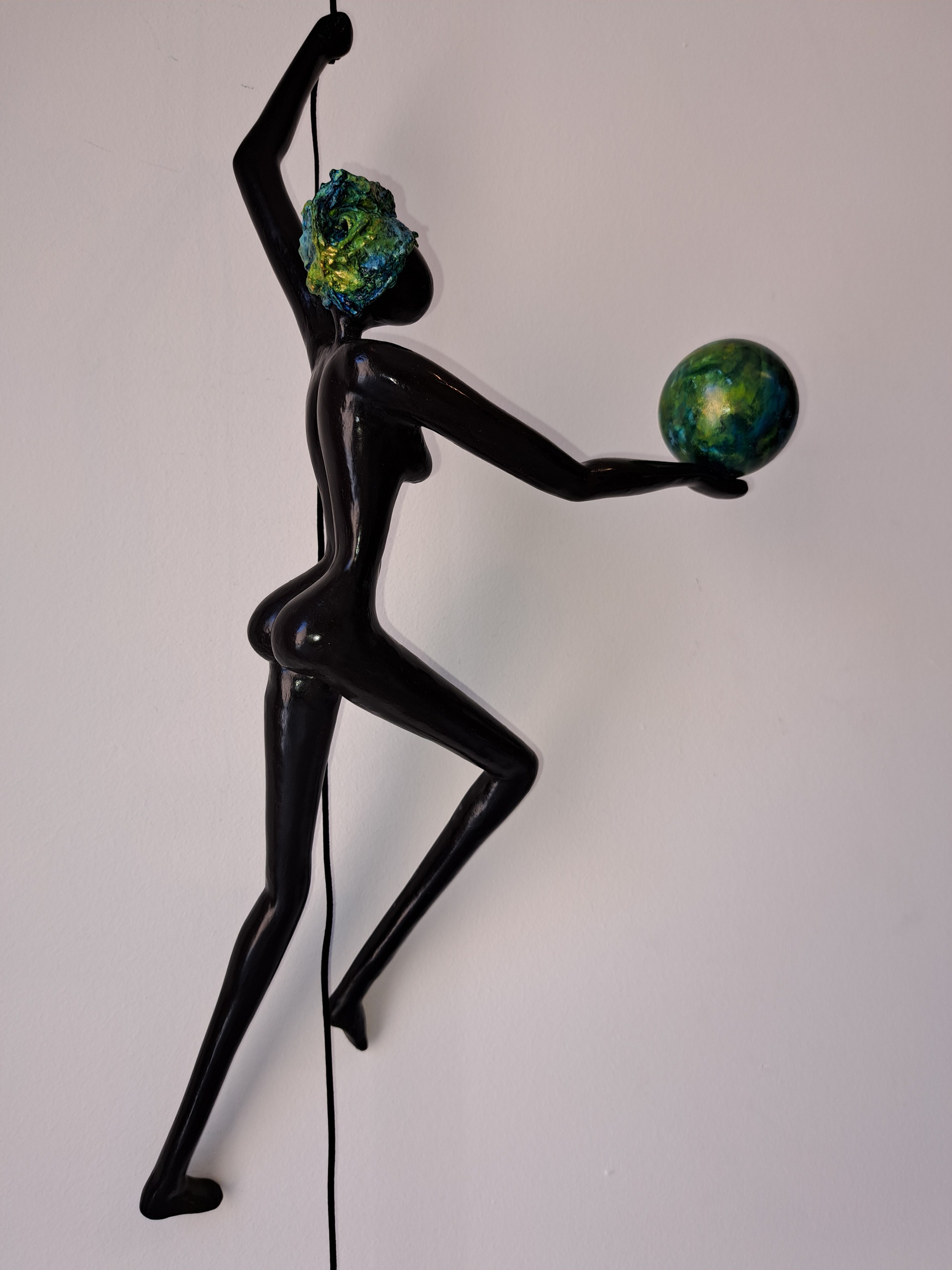 Het figuur met hoedje en bal zijn in mooie harmonie. De bal en hoedje zijn afgewerkt door Joke Meijran