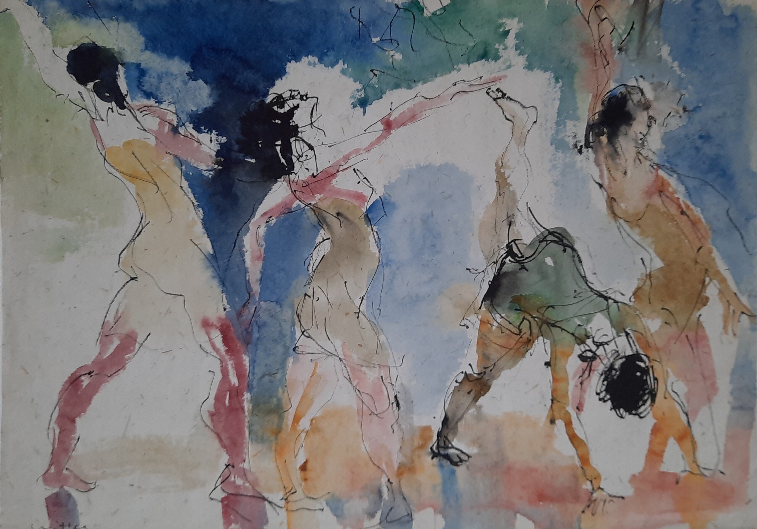 Van de landschappen die ik buiten heb geschilderd maak ik op mijn atelier vaak een nieuwe versie op groot formaat waarin ik tot meer expressie en abstractie wil komen. Om de beweging van een dans te pakken, om de persoonlijkheid van een geportretteerde in beeld te kunnen brengen, moet ik het dansen meebeleven, moet ik het model in de ogen kunnen kijken. In die directe confrontatie ontstaat een spel van kleurvlekken en lijnen, bewust of gevoelsmatig aangebracht, waarin ik mijn reactie op het waargenomen onderwerp tot uitdrukking breng. Ik werk geconcentreerd en snel, daarom is mijn favoriete techniek inkt en aquarel.