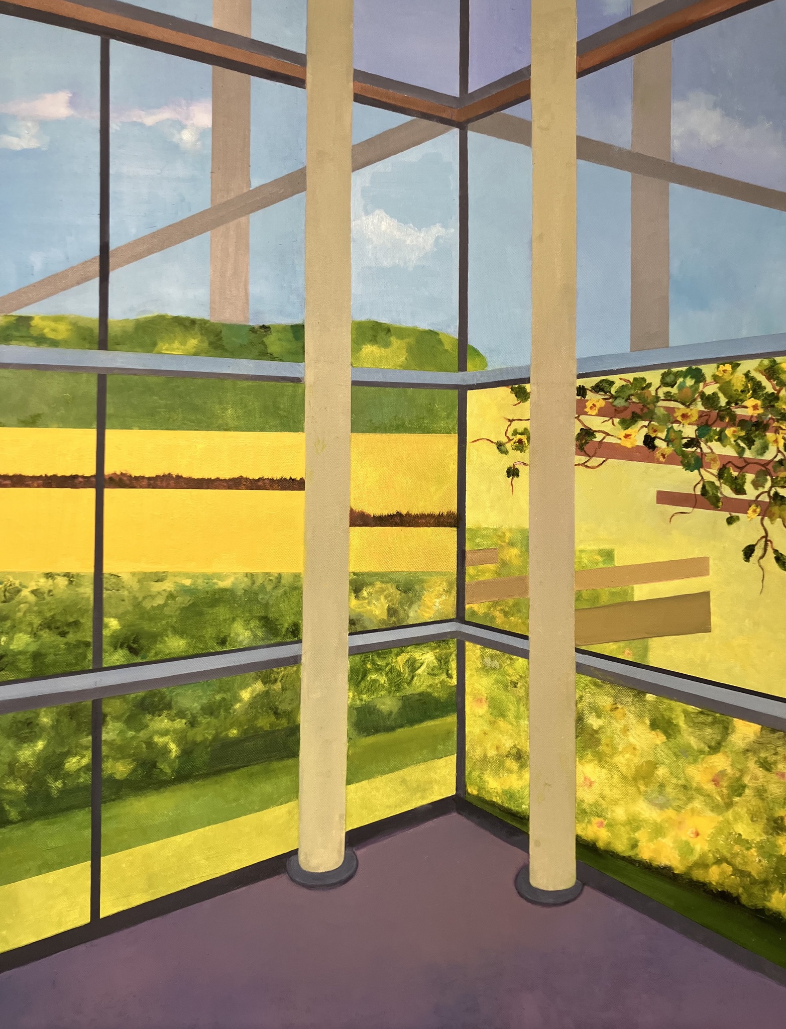 Anneke Ingelse maakt olieverfschilderijen in haar atelier in Gouda. Een belangrijke inspiratiebron is de architectuur vaak in combinatie met natuur. Kleur en ritme zijn belangrijk in haar werk.