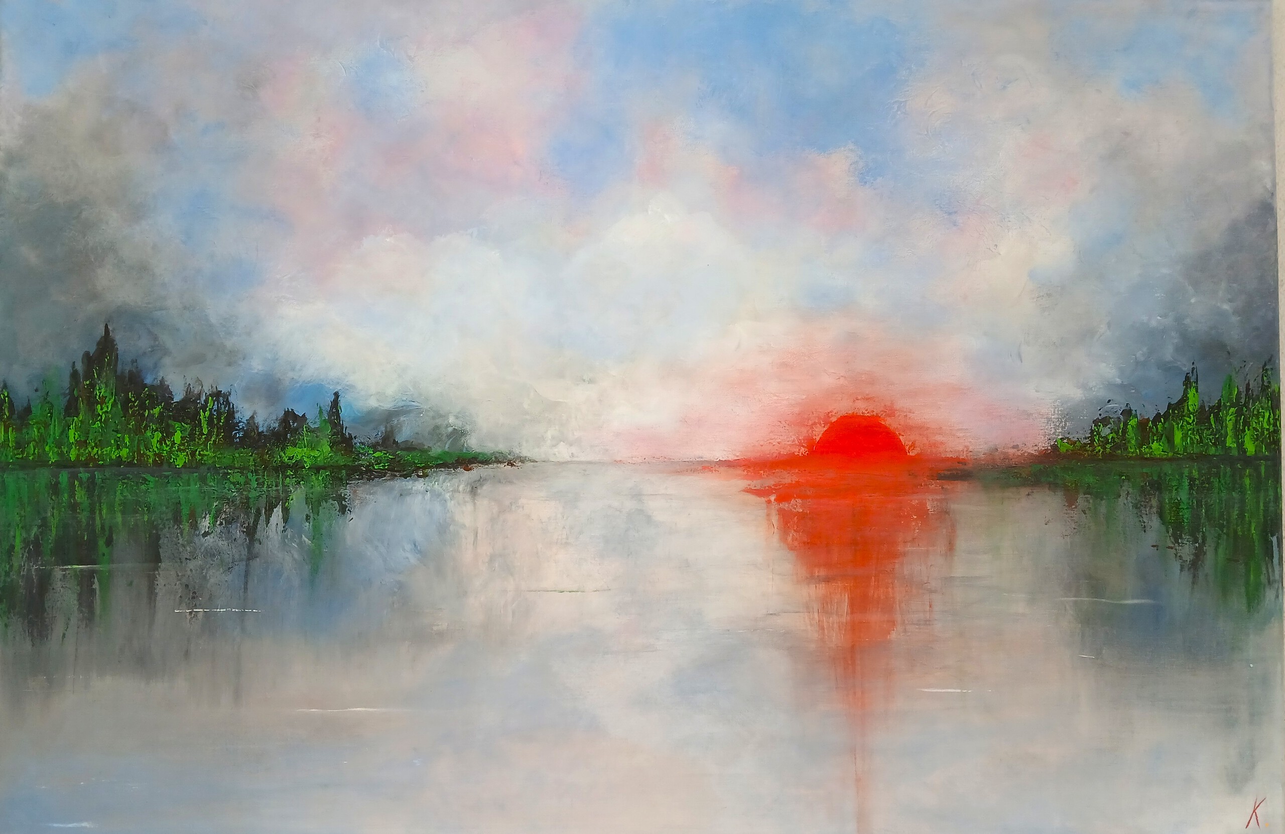 Buienlandschap, gemaakt met paletmes en grote kwast