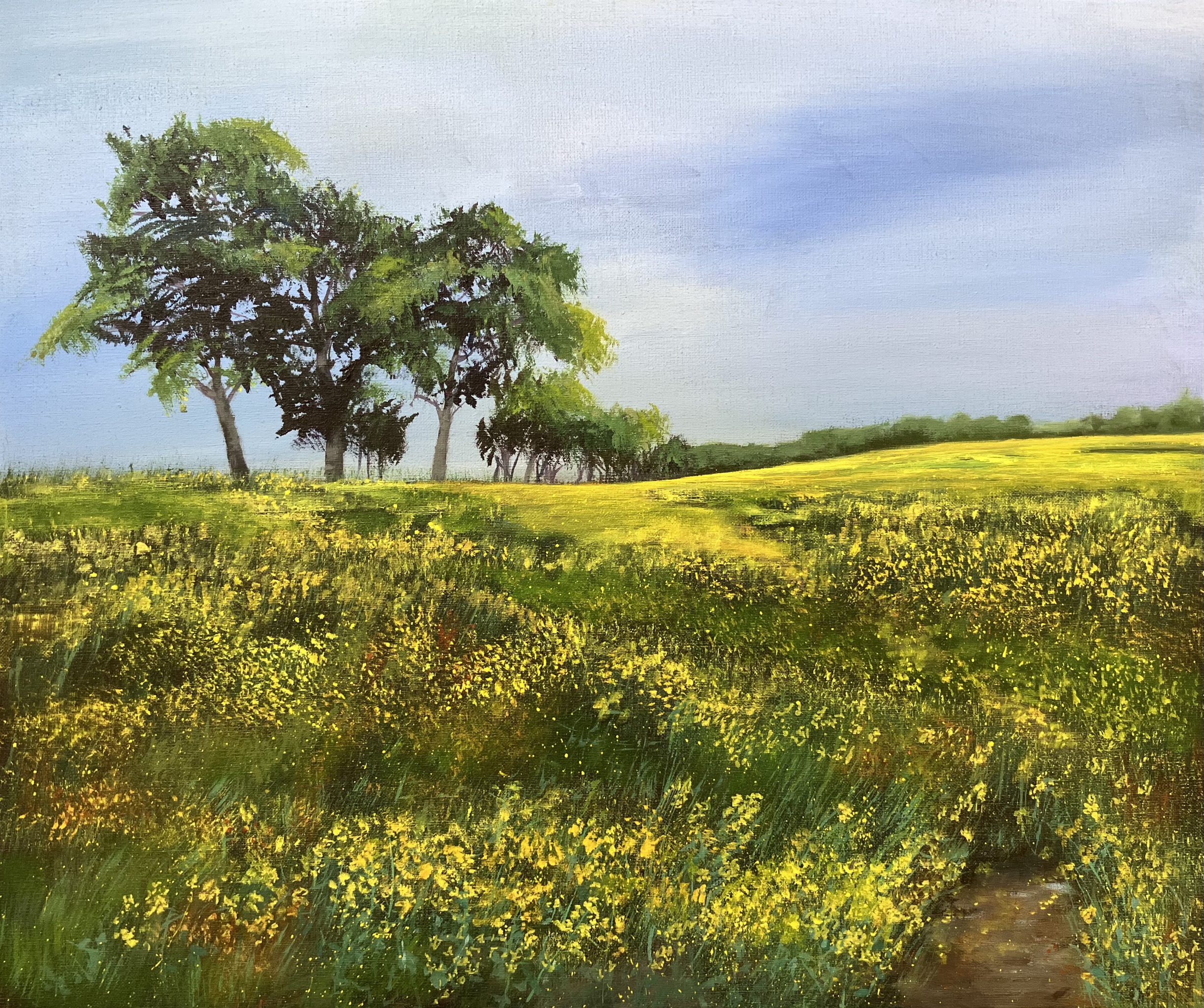 Geel Landschap Groen Bomen Lucht Blauwe Koolzaad
