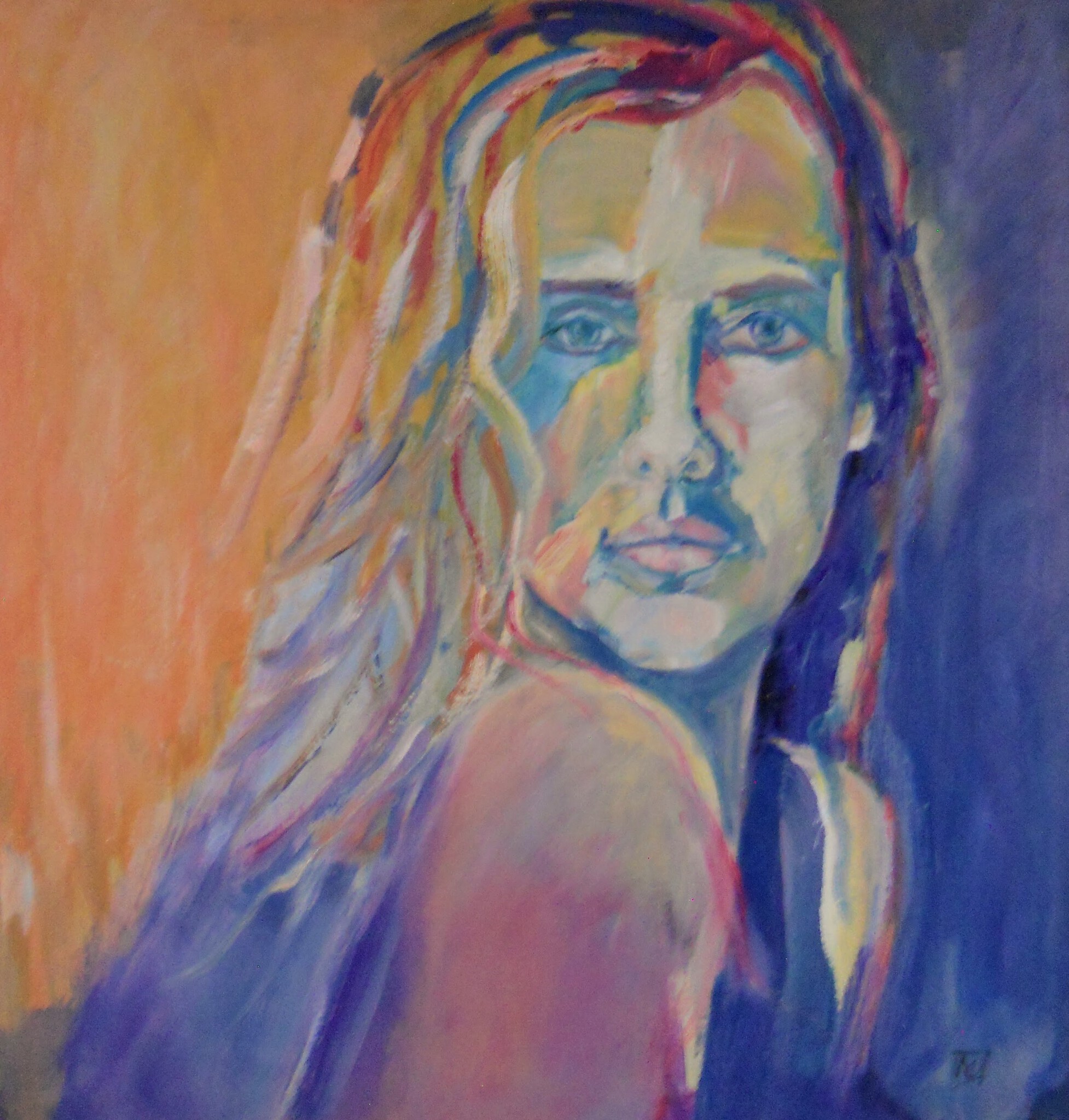 Veelkleurig portret van jonge vrouw.