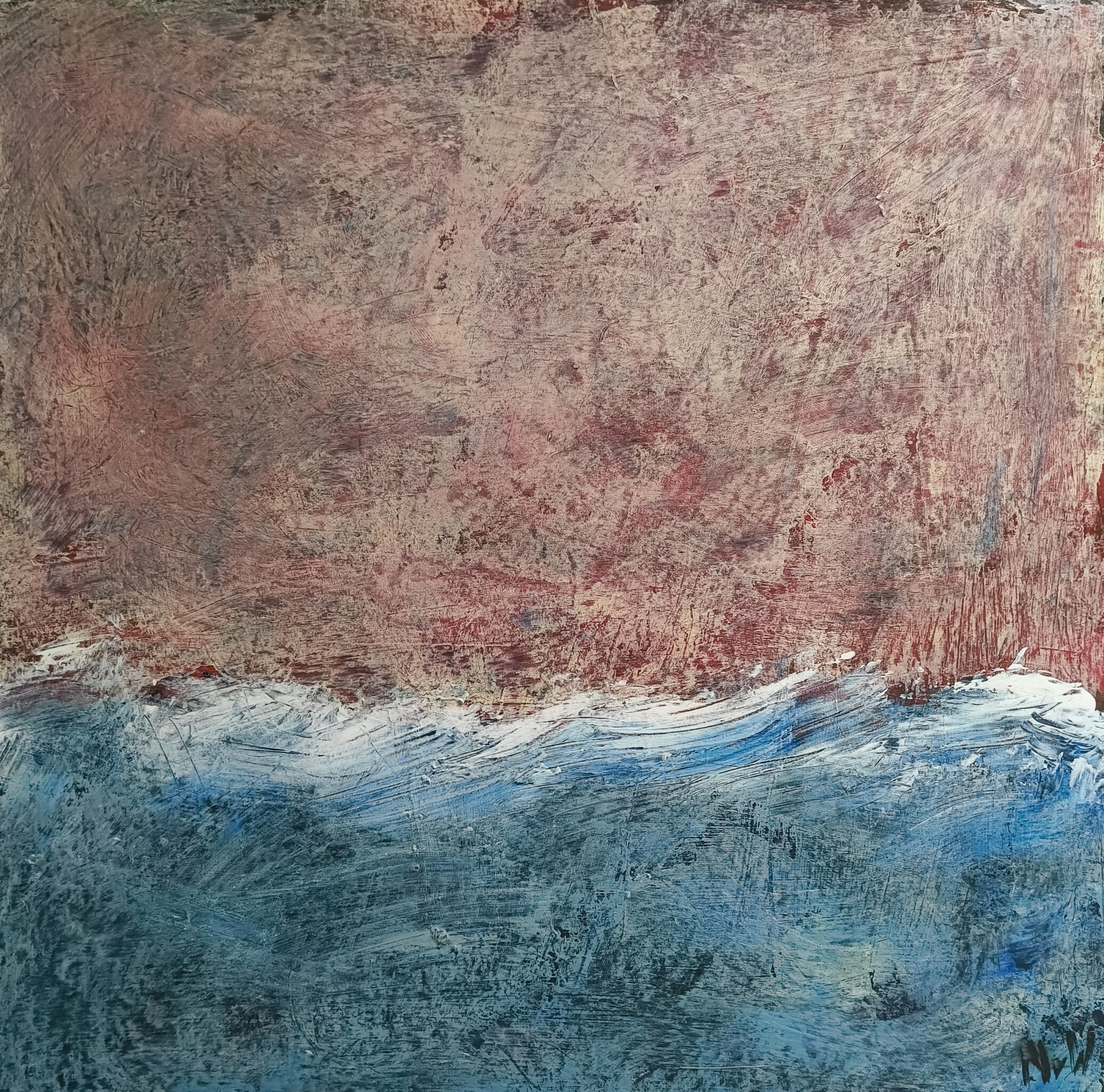 Schilderij op basis van de Nederlandse vlag. Een vrije interpretatie, met ruimte voor eigen expressie van stemmingen en ideeën. Gemaakt op schilderkarton.