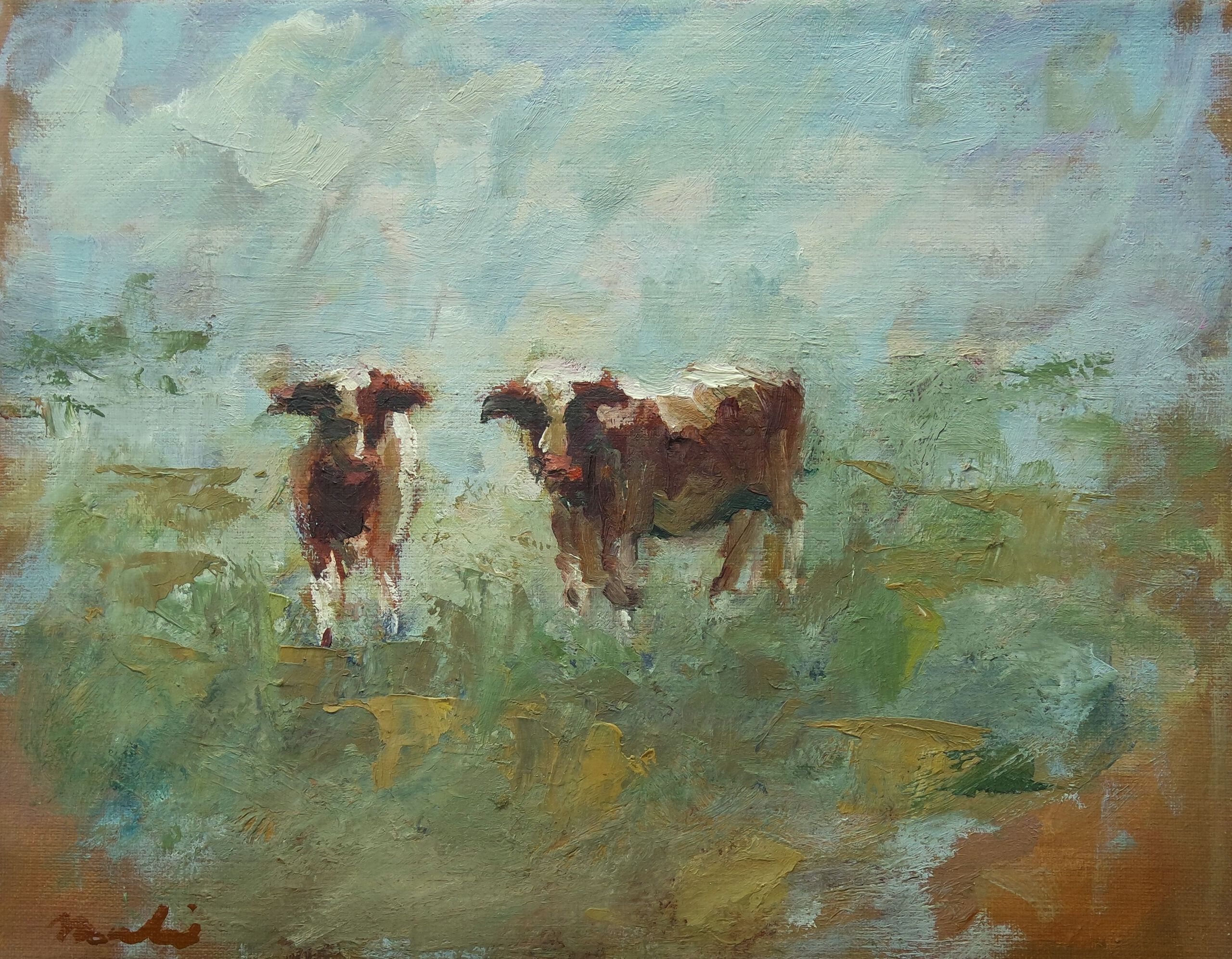 Altijd als je koeien wilt schilderen komen ze nieuwsgierig naar je toe gelopen en wordt het heel anders dan je van plan was.