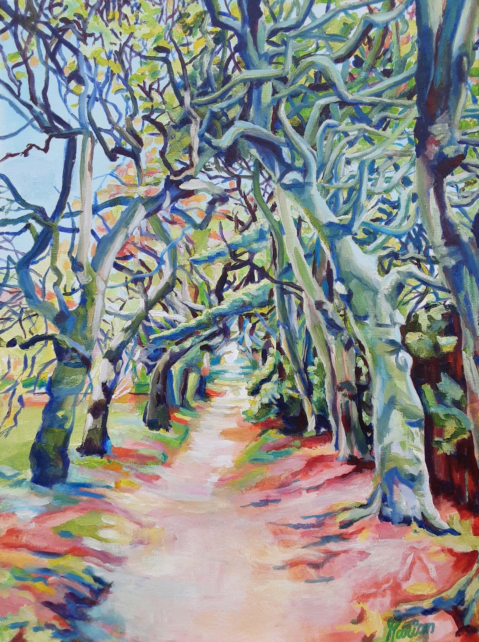 Elke keer als ik er kom inspireert deze beukenlaan mij. Het is te zien in de tuin van het kasteel in Amerongen. Ik kan het daarom niet laten het nog eens te schilderen.