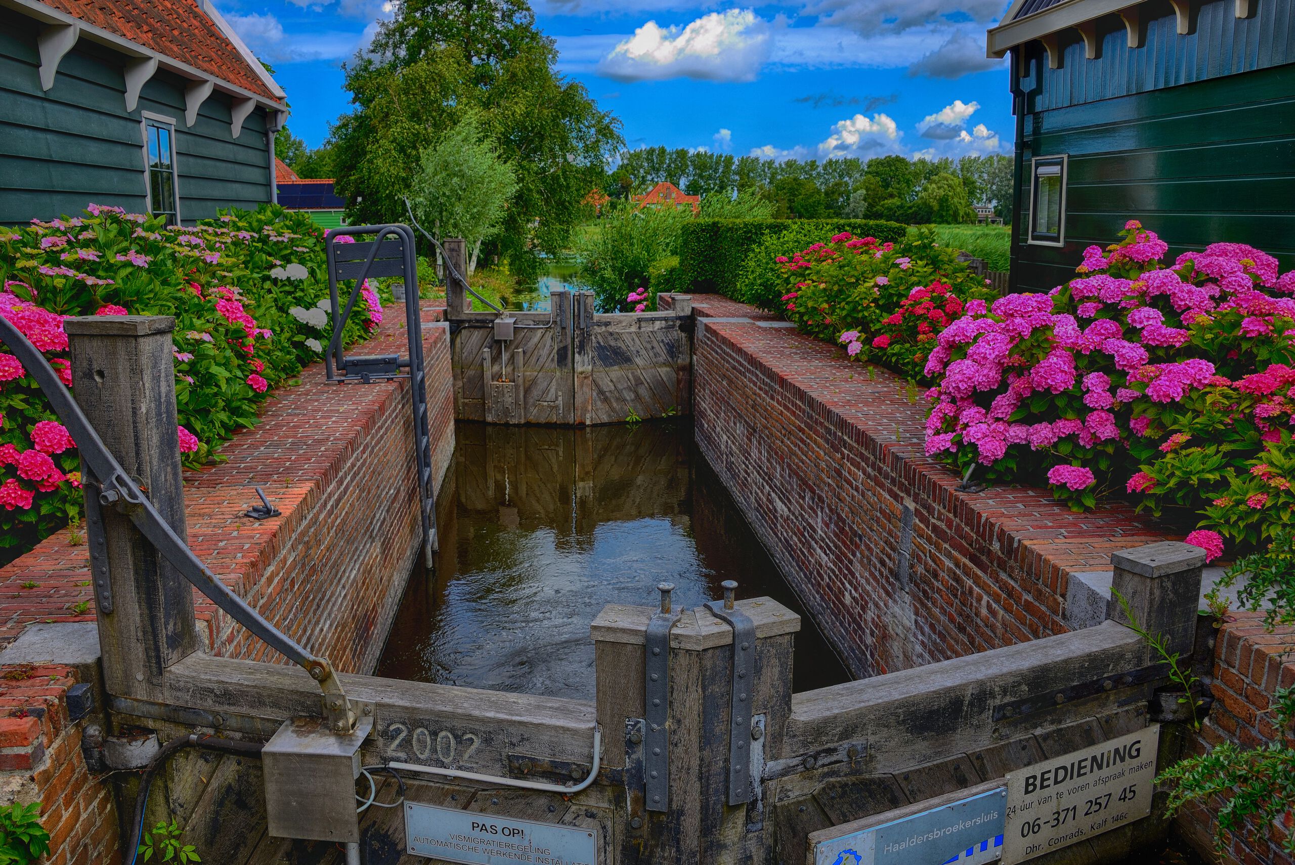 Een sluis vol bloemen, kleurrijk. Foto wordt in beperkte oplage (max. 10 genummerde afdrukken) verkocht. Ander formaat is ook mogelijk