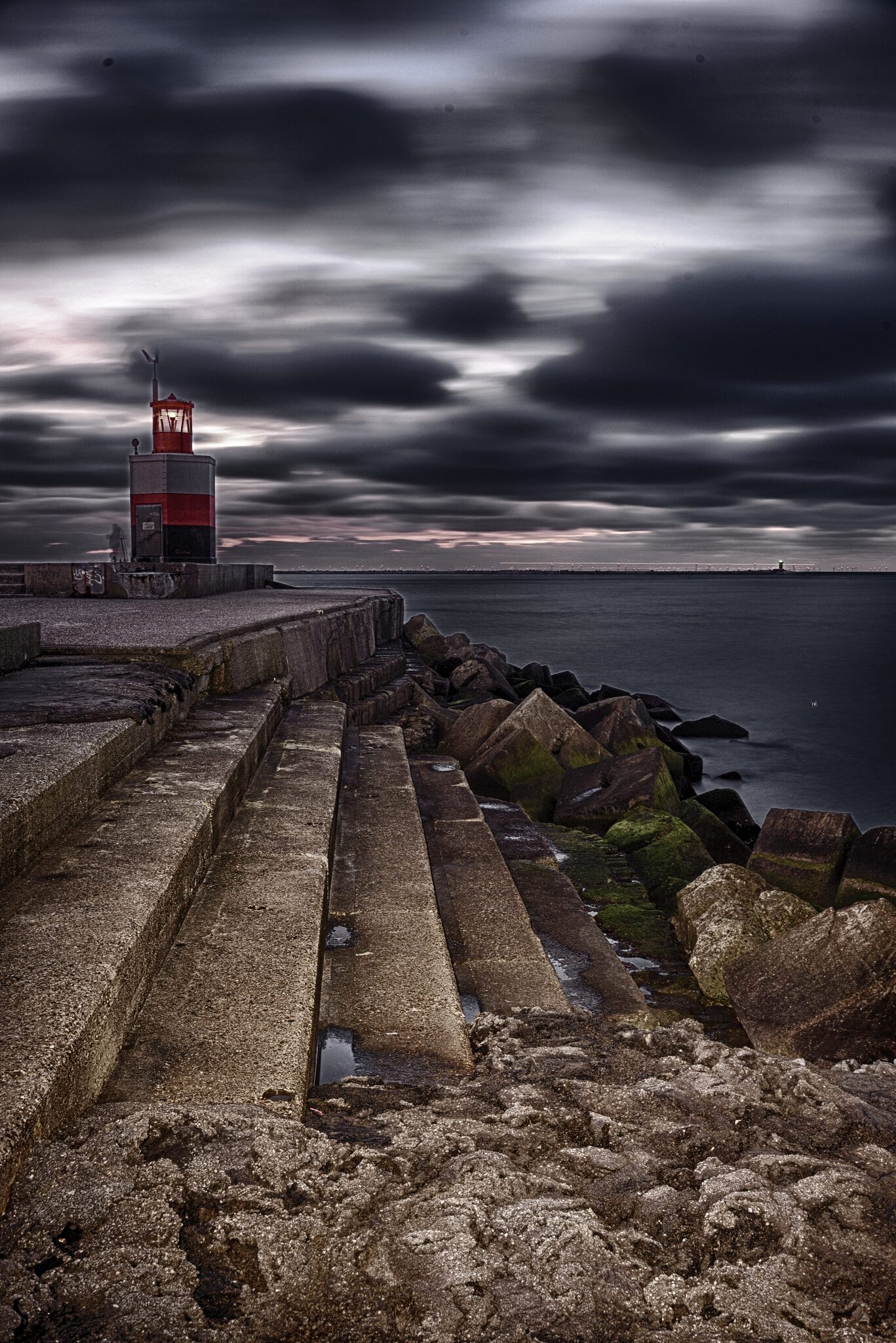 De zon is net onder, alleen de lucht is nog enigzins verlicht bij de Noordpier. Foto wordt in beperkte oplage (max. 10 genummerde afdrukken) verkocht. Ander formaat is ook mogelijk