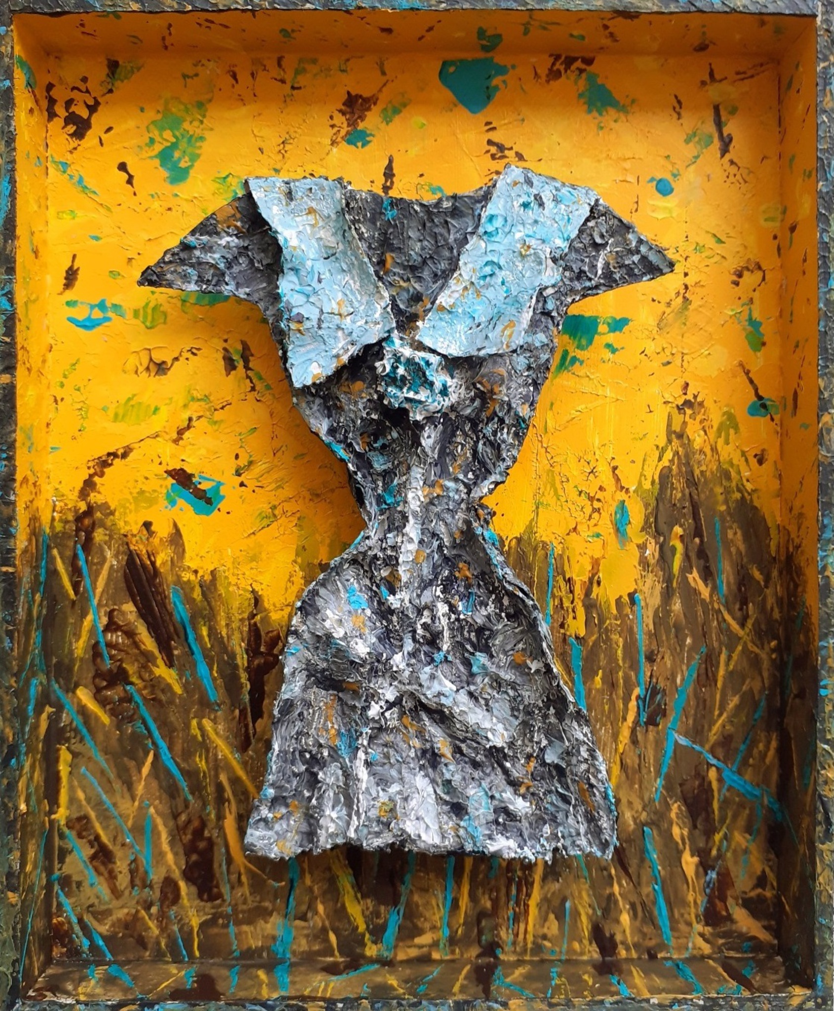 Feest Geel Jurk Grijs Acryl Mixed Media
