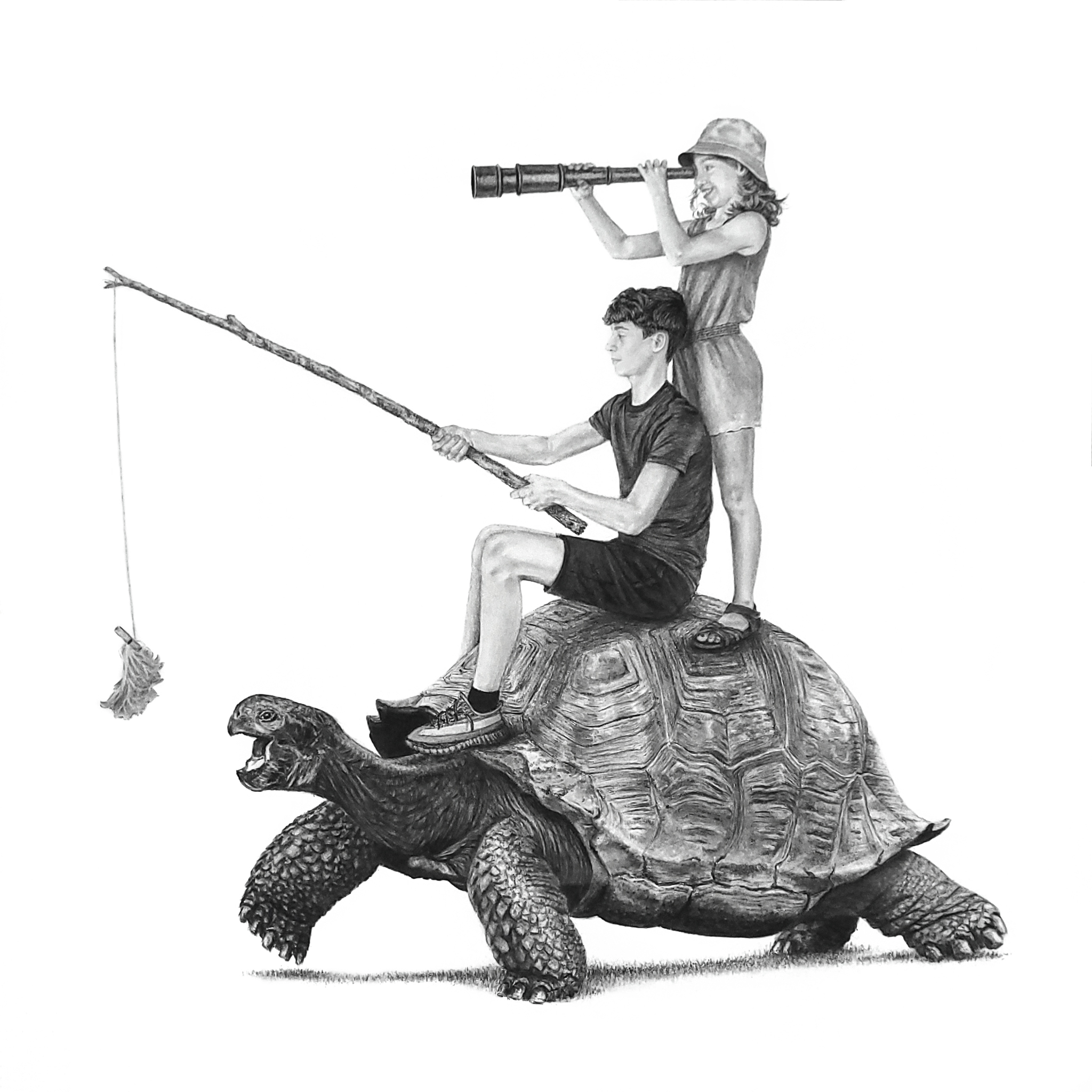 "Pace Of Nature" Houtskooltekening, 40x40 cm ~ Werk in opdracht