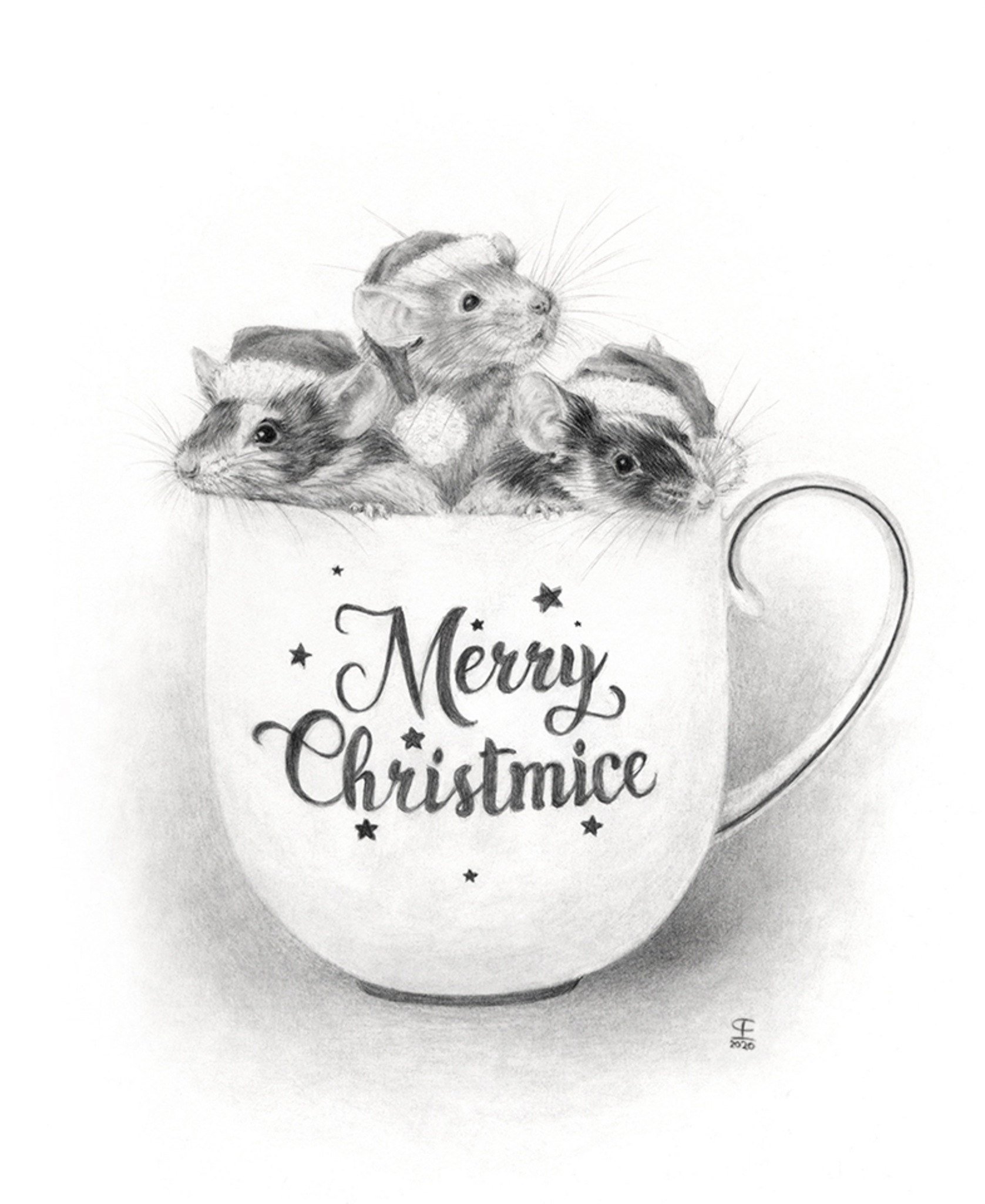 "Merry Christmice" Grafiettekening, 15x20 cm ~ Privécollectie