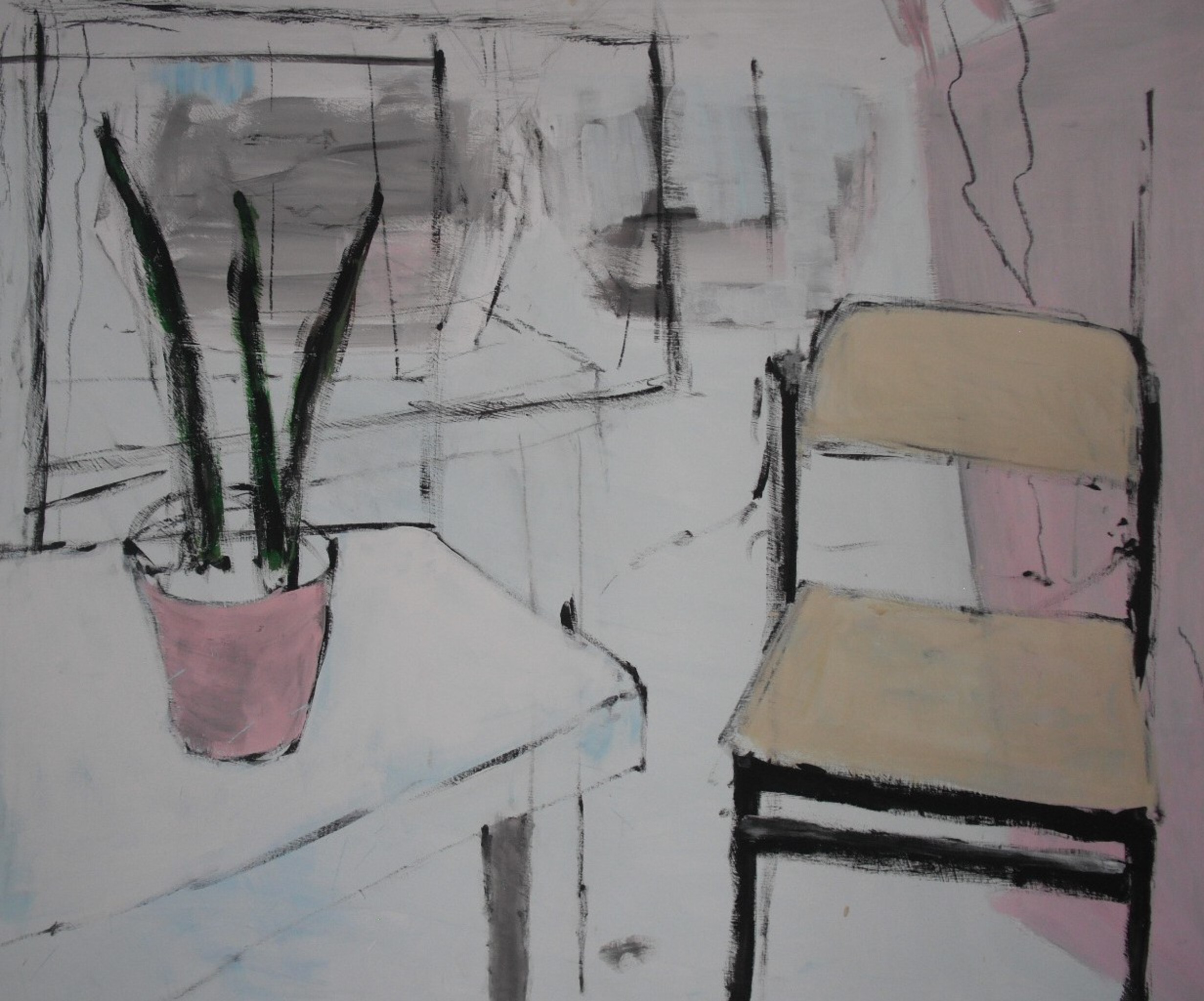 Marcel laat in zijn recente werk de andere weg zien die hij is ingeslagen. ,,In tegenstelling tot mijn eerdere werk, dat heel dicht bij de realiteit lag, vertaal ik nu wat ik waarneem naar mijn eigen werkelijkheid. Het is eigenlijk een vereenvoudigen van die realiteit, tot wat voor mij de essentie is. In die zoektocht spelen kleur en compositie een hoofdrol’.