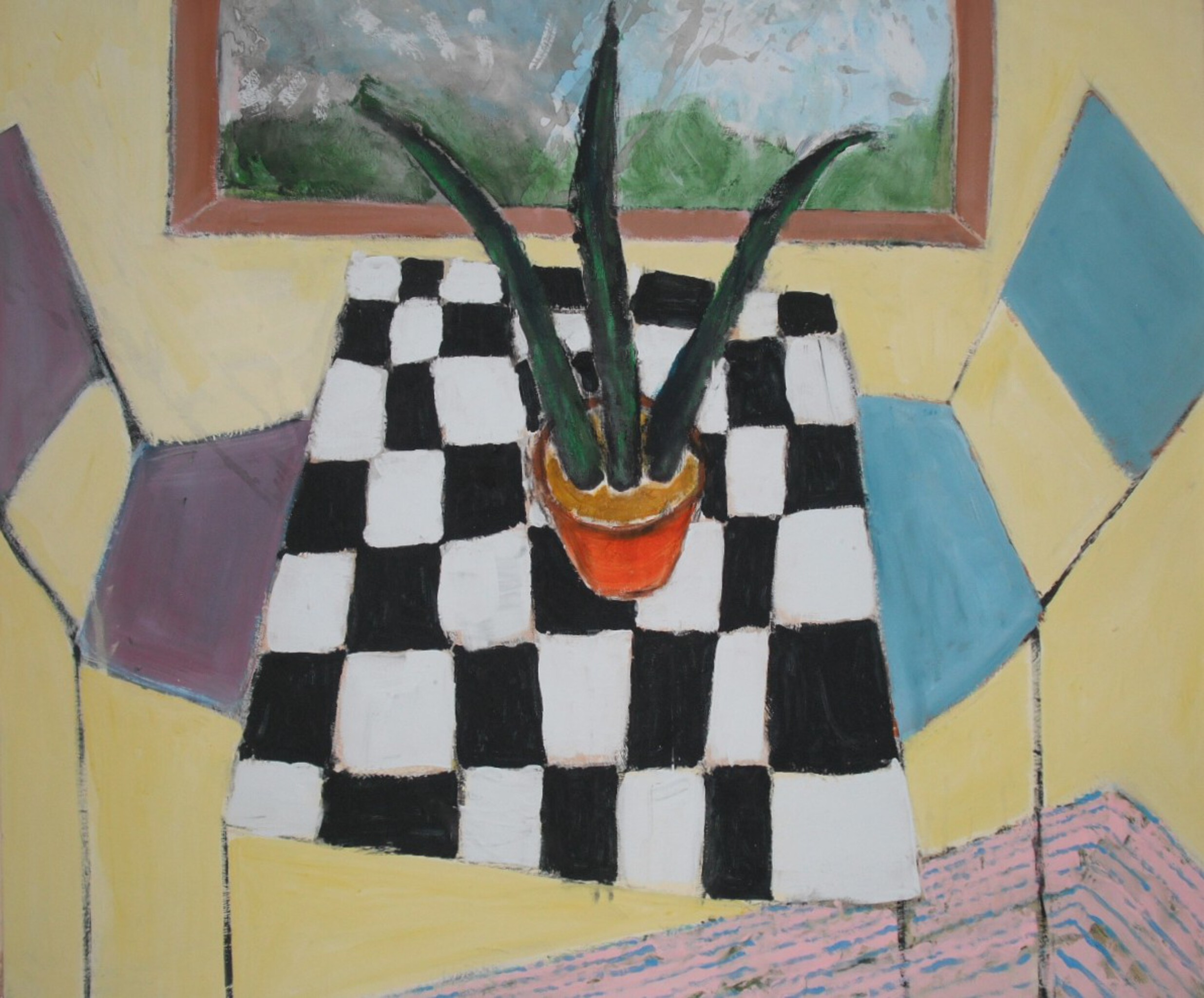 Marcel laat in zijn recente werk de andere weg zien die hij is ingeslagen. ,,In tegenstelling tot mijn eerdere werk, dat heel dicht bij de realiteit lag, vertaal ik nu wat ik waarneem naar mijn eigen werkelijkheid. Het is eigenlijk een vereenvoudigen van die realiteit, tot wat voor mij de essentie is. In die zoektocht spelen kleur en compositie een hoofdrol’.