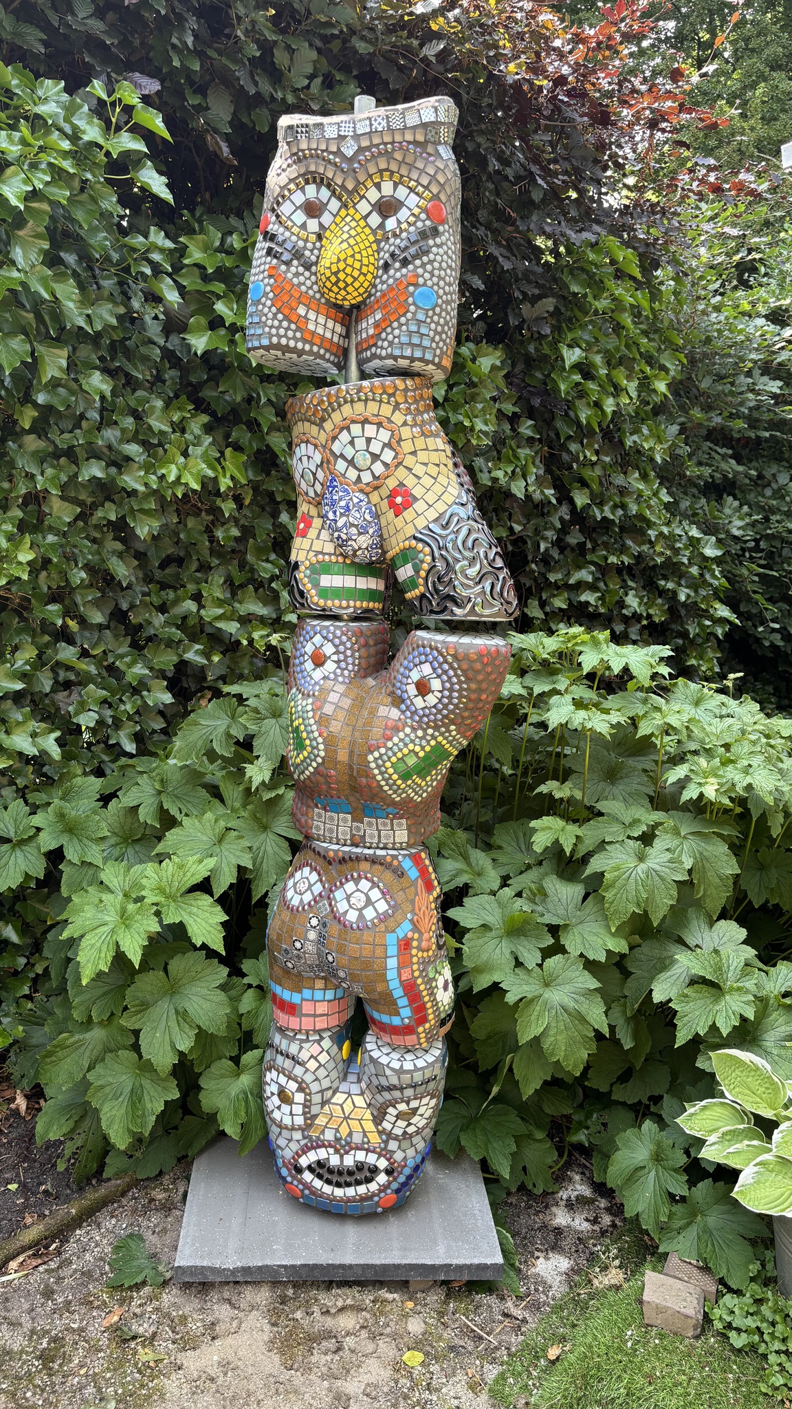 Kleurrijke en warme mozaïek gemaakt met liefde. Wij maken samen grote projecten en óók onze eigen stukken. Het verwerken van verschillende materialen is een belangrijke kenmerk van ons werk.