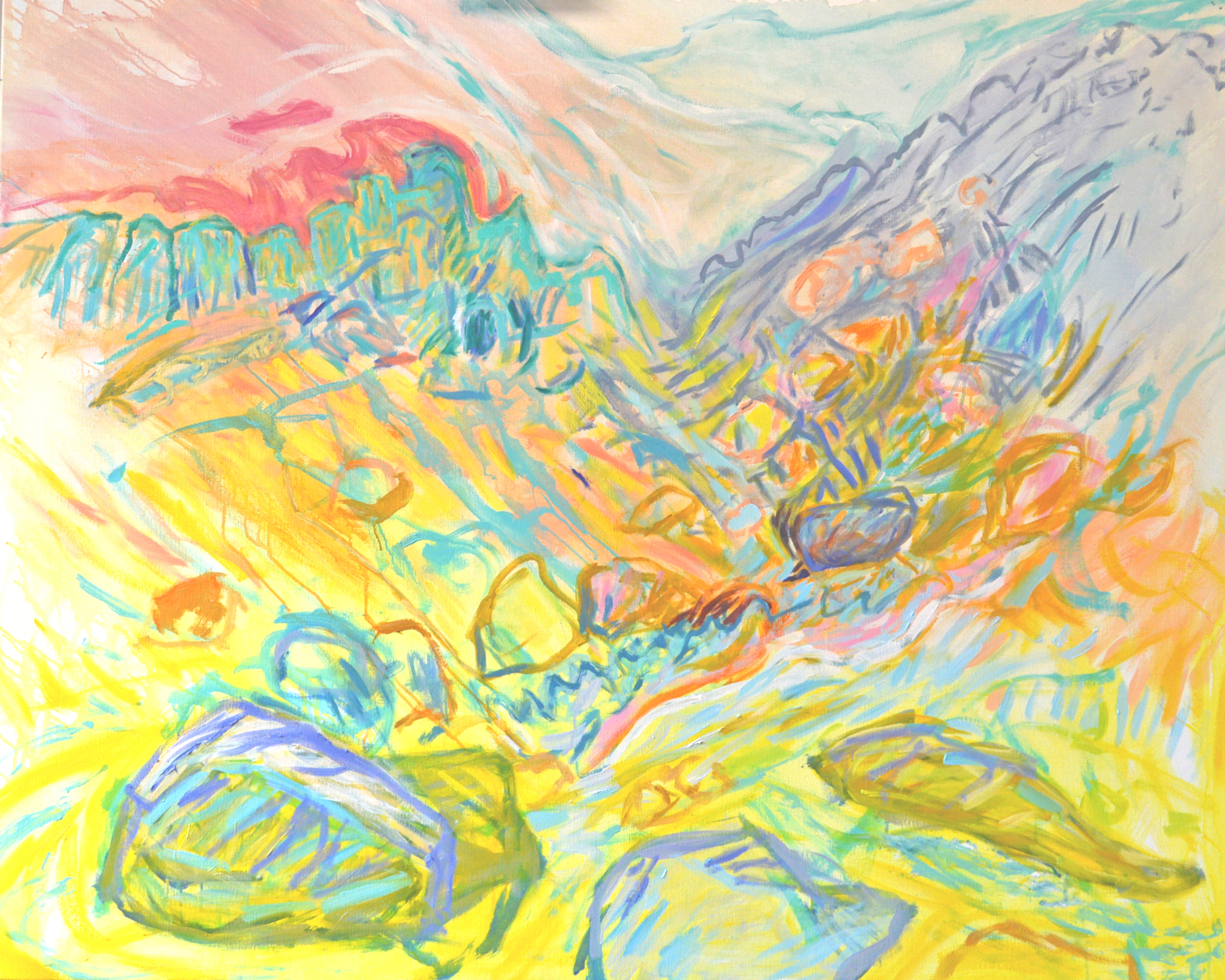 Sophie Bekkering toont in haar schilderijen en keramiek de grootse natuur. Begonnen vanuit wandelingen door de Gelderse bossen is ze inmiddels de bomen nagereisd tot aan en over de boomgrens. De ongerepte alpine ruimte waarin bomen, rotsen en water figureren.is haar speelveld.In haar schilderijen verbeeldt ze de onderliggende krachten van deze stille omgeving door middel van haar expressieve toetsen en levendige kleurcontrasten.