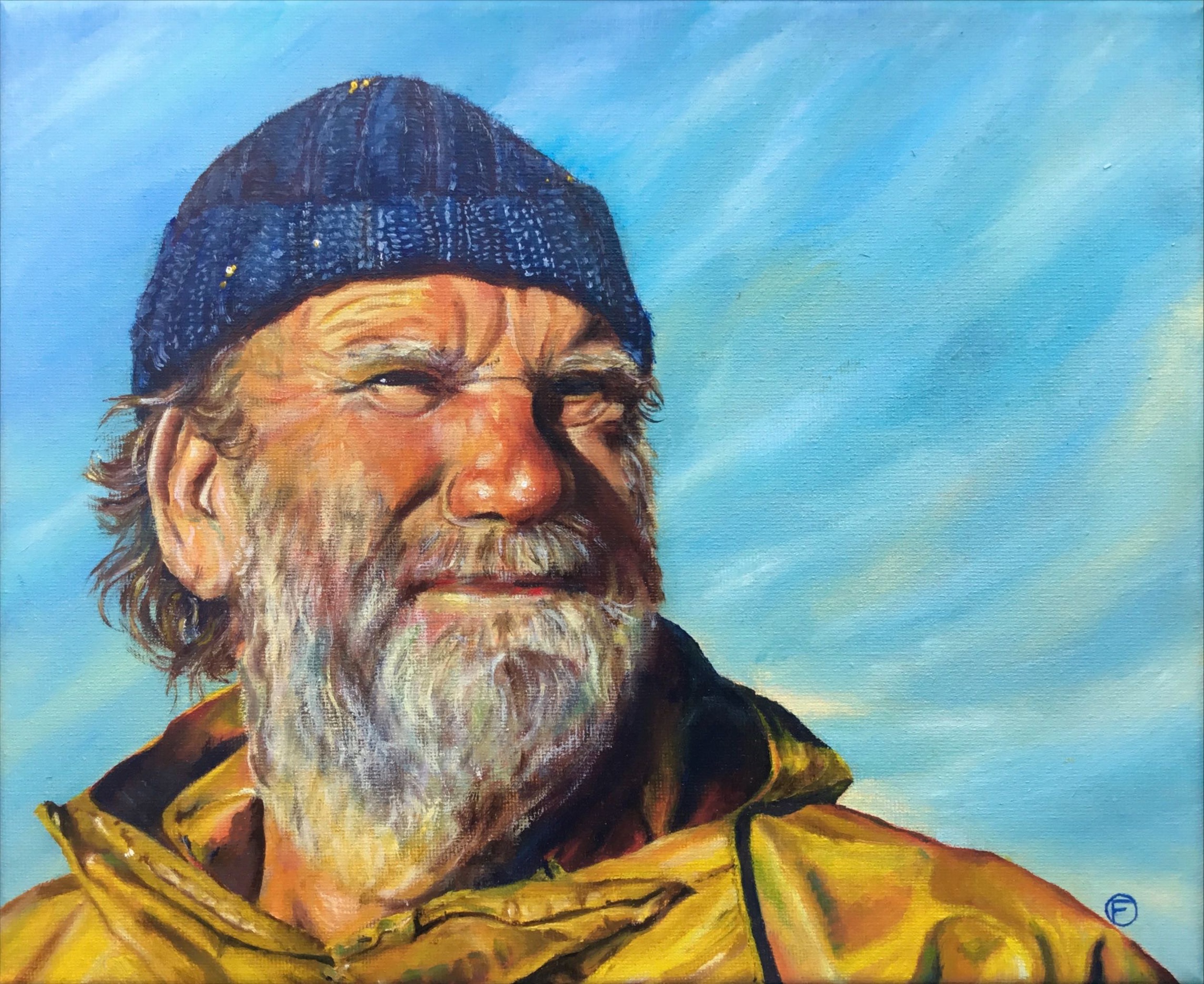 Portret Visser Zeeman Kleur Mens Man Muts Blauw Geel De Friese Schipper