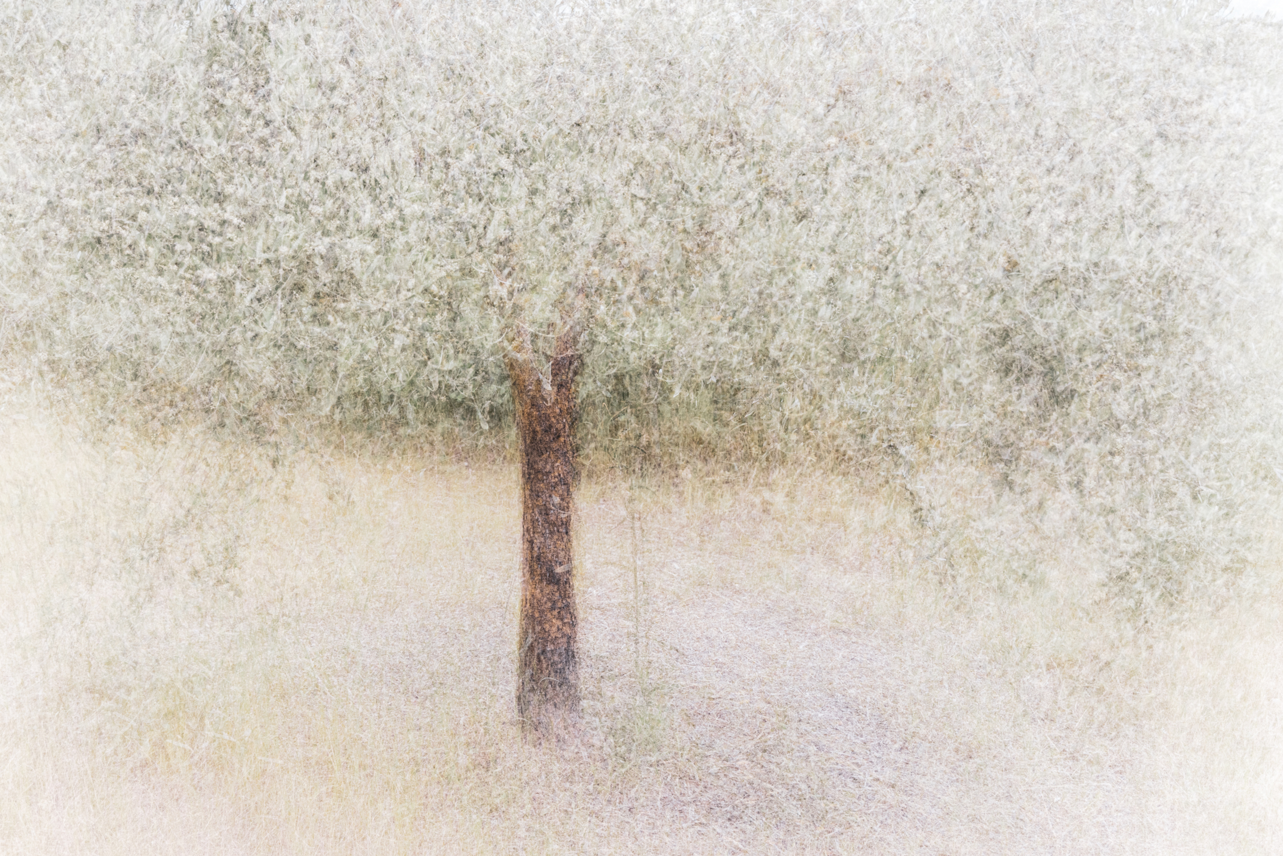 Minimalistische foto van boom met lichte kleuren, gemaakt met een digitale camera (meervoudige belichtingstechniek).