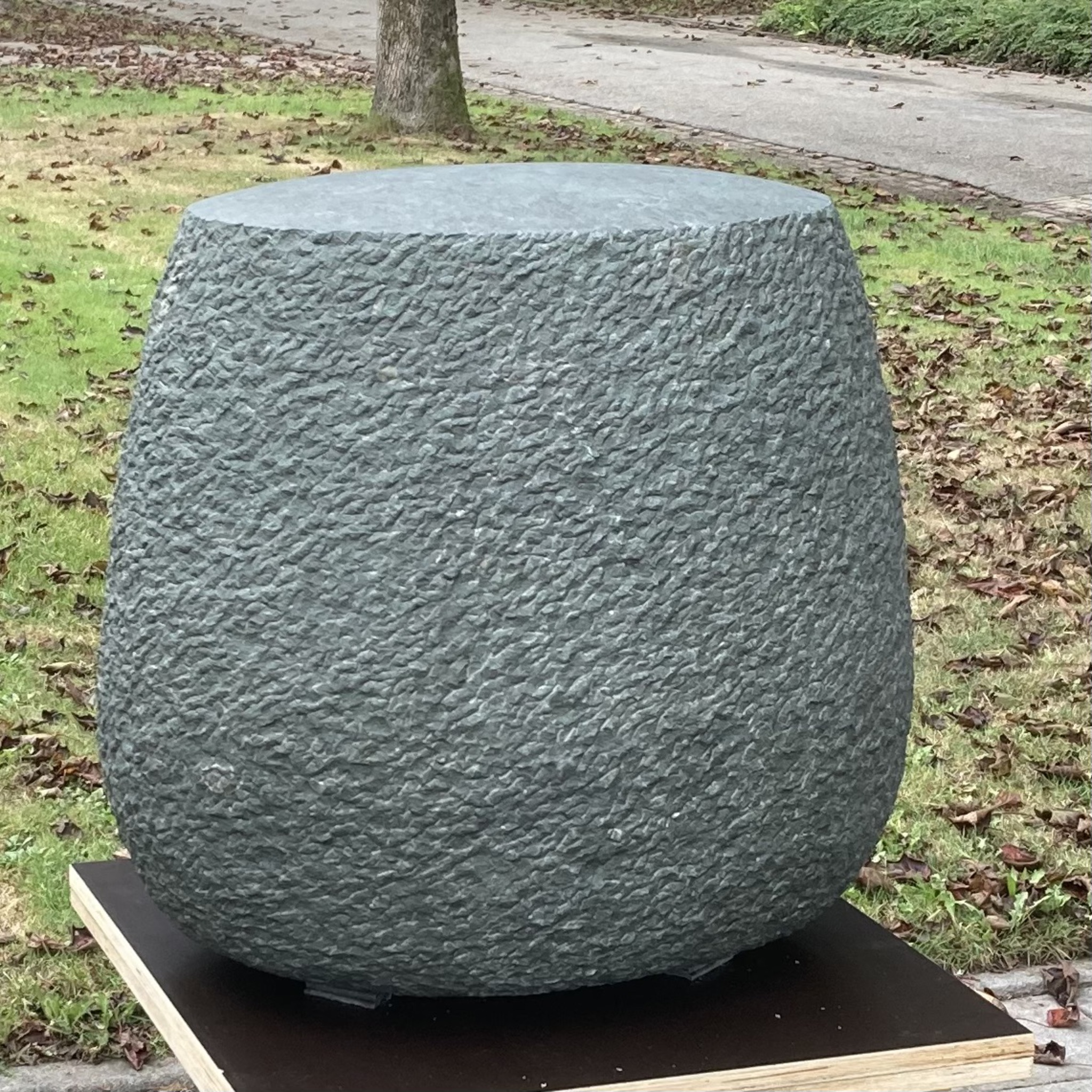 Het werk is gemaakt van Anröchter Grünstein. De zijkant is aangehakt met een puntbeitel. De bovenkant is zoet gepolijst.