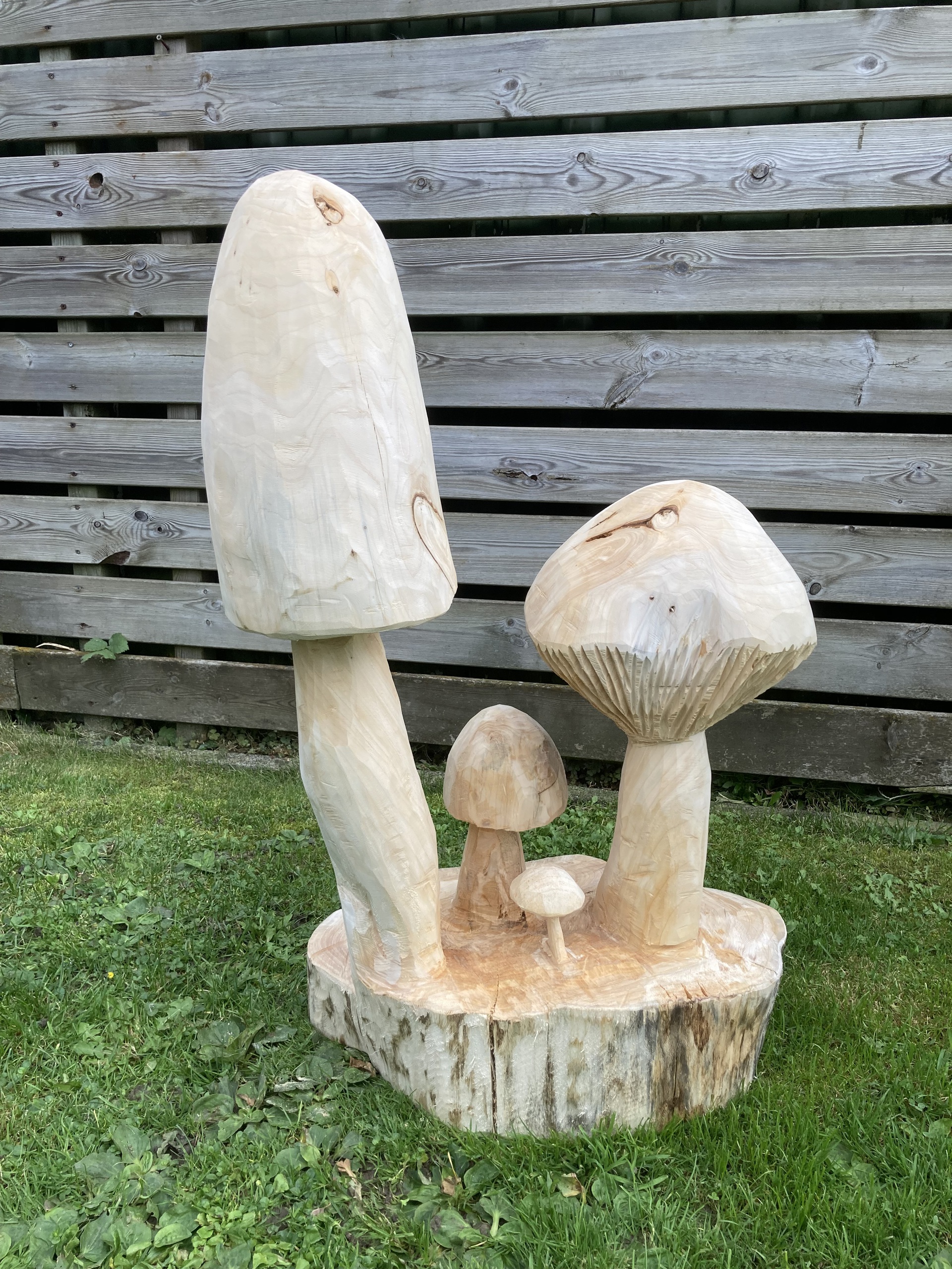 Hout Beeld Paddestoelen Paddestoel Woodcarving Boomstam Houtenbeeld Sculptuur Houtensculptuur Kettingzaagkunst