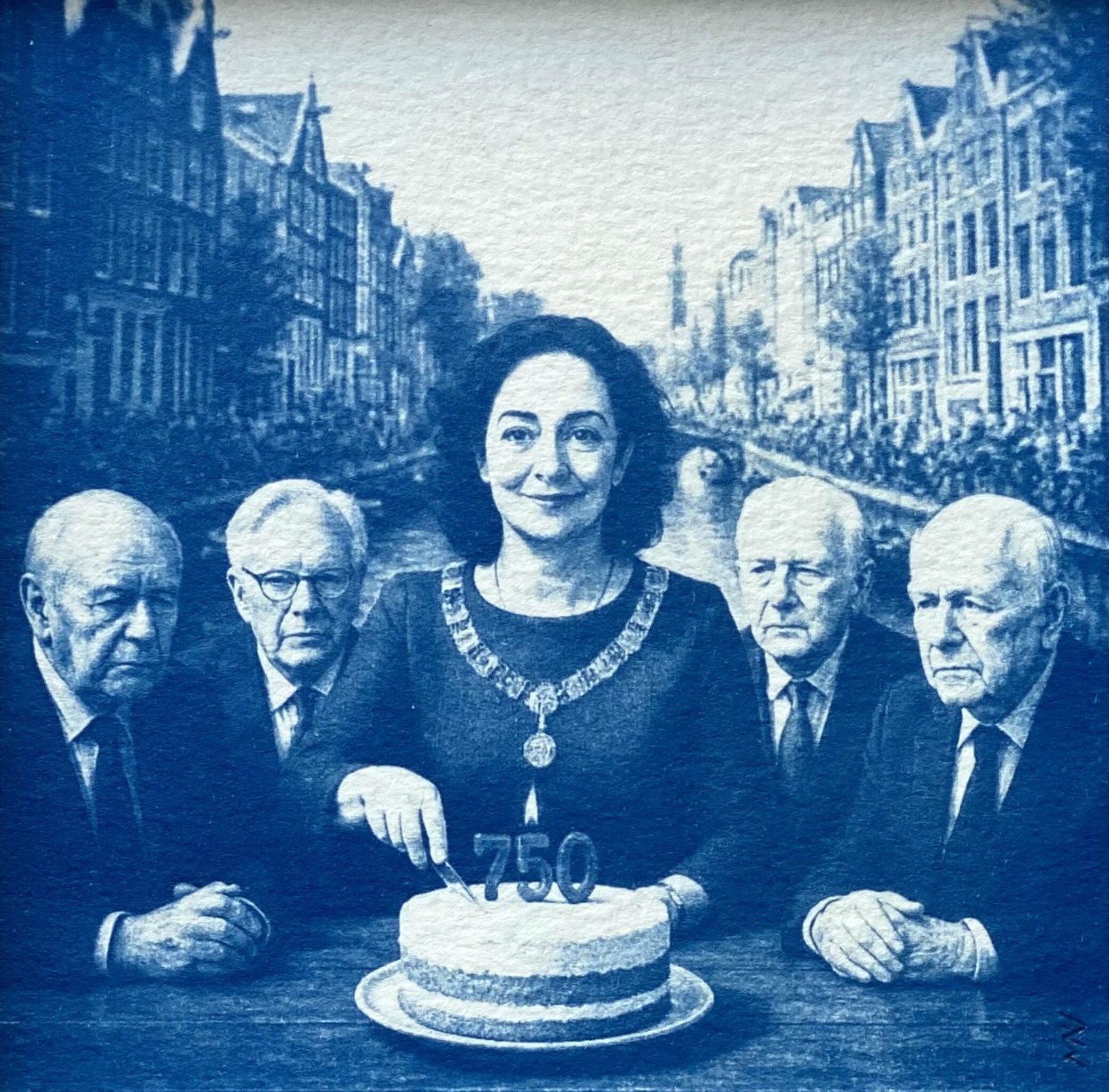 Gelimiteerde serie fotogrammen/ Cyanotype op 300 grams aquarelpapier. In deze serie is een eeuwenoude techniek uit de begintijd van de fotografie gecombineerd met de nieuwste AI technologie. De beelden zijn een speels eerbetoon aan het leven in de stad. Inclusief houten baklijst met ophangsysteem. Het werk is te koop via 10x10Artist.
