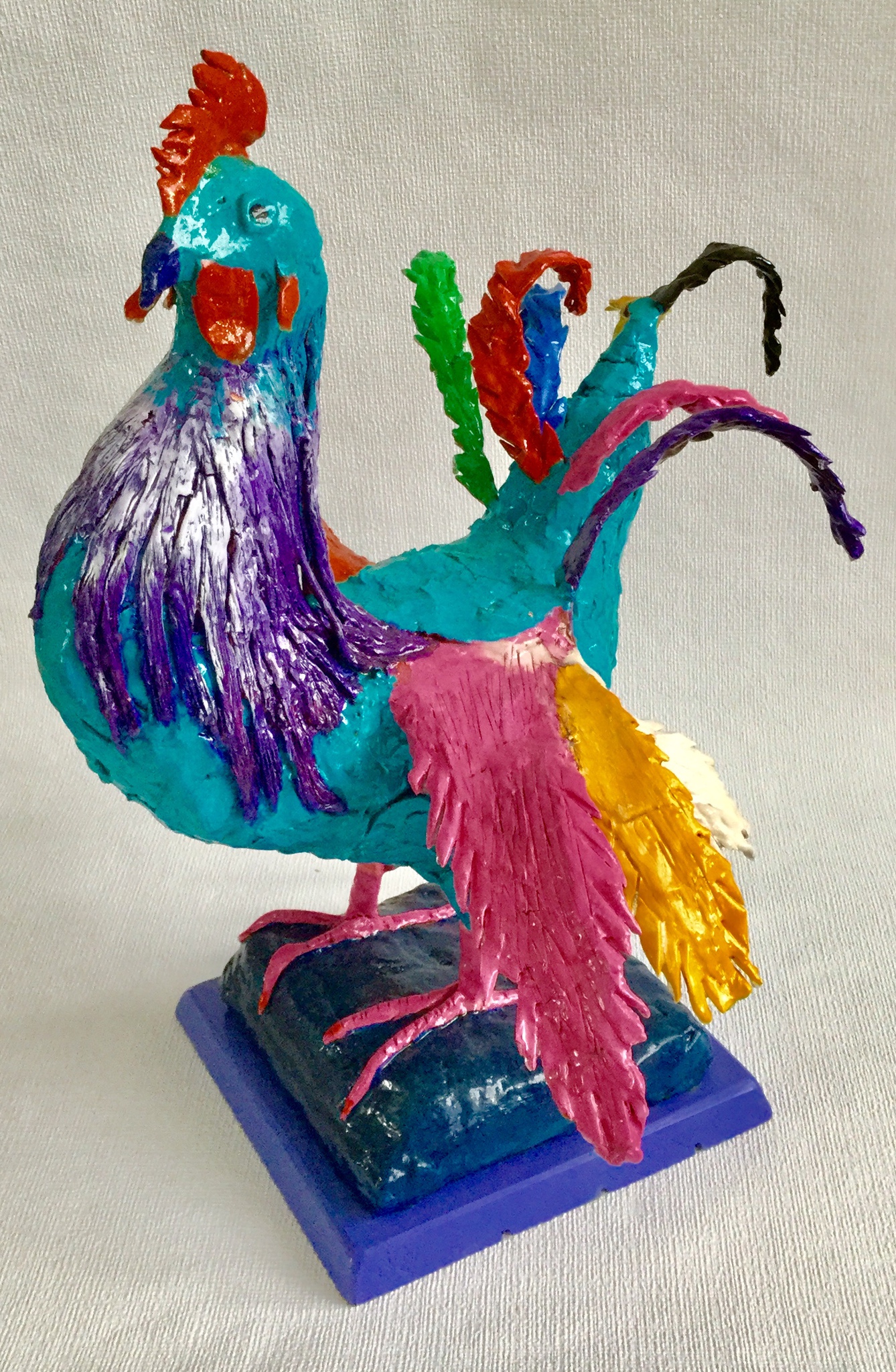 Pim van Pelt maakt vrolijke, kleurrijke en betaalbare kunst. Mensen een glimlach ontlokken is het doel. Het materiaal: keramiplast, acryl en afgewerkt met meerdere lagen epoxie.