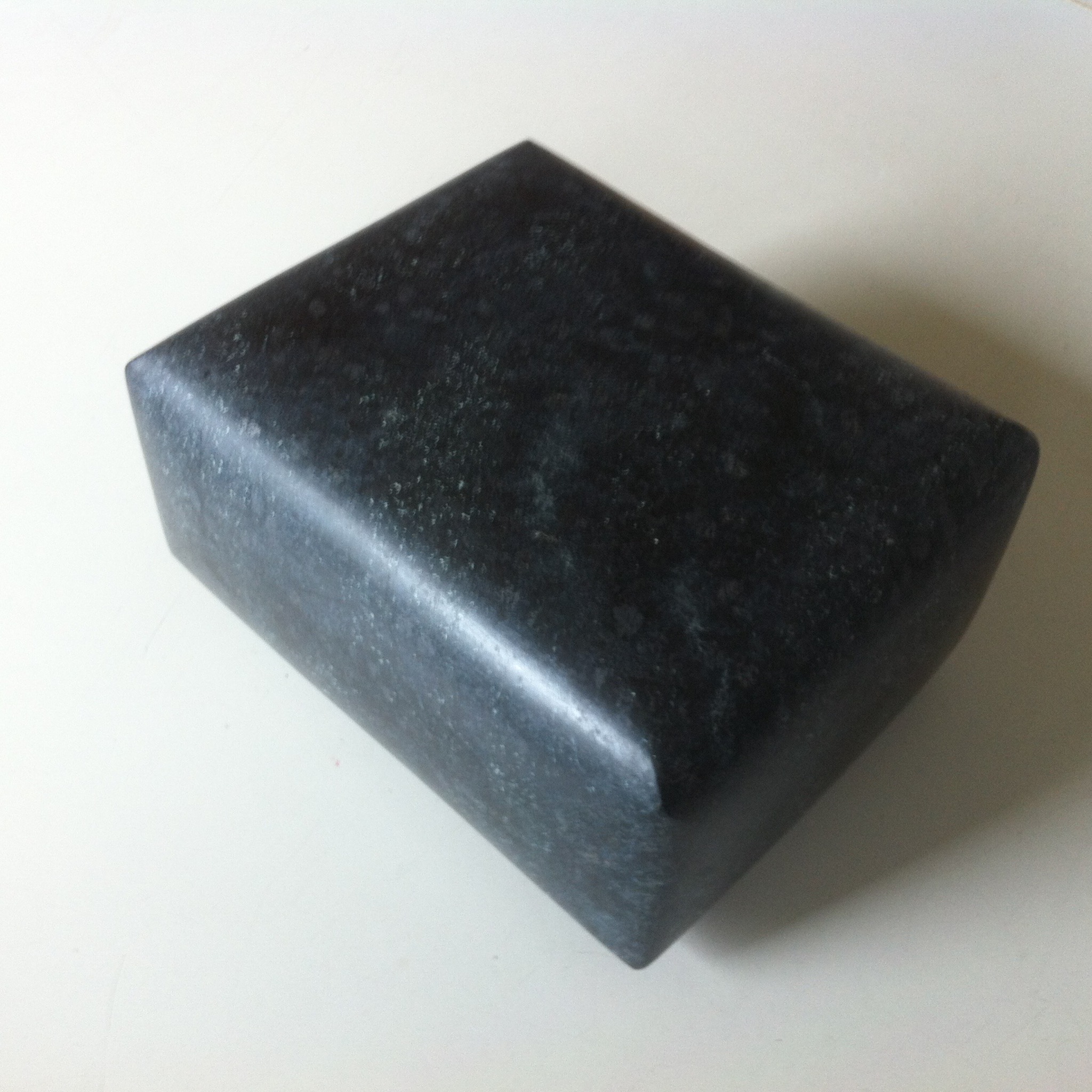 Het werk is gemaakt van diabas en is rondom zoet geschuurd, een soort van zijdeglans. Het heeft iets weg van een trommeltje, of een kussentje. Ik had dit werk wel tien keer kunnen verkopen.
