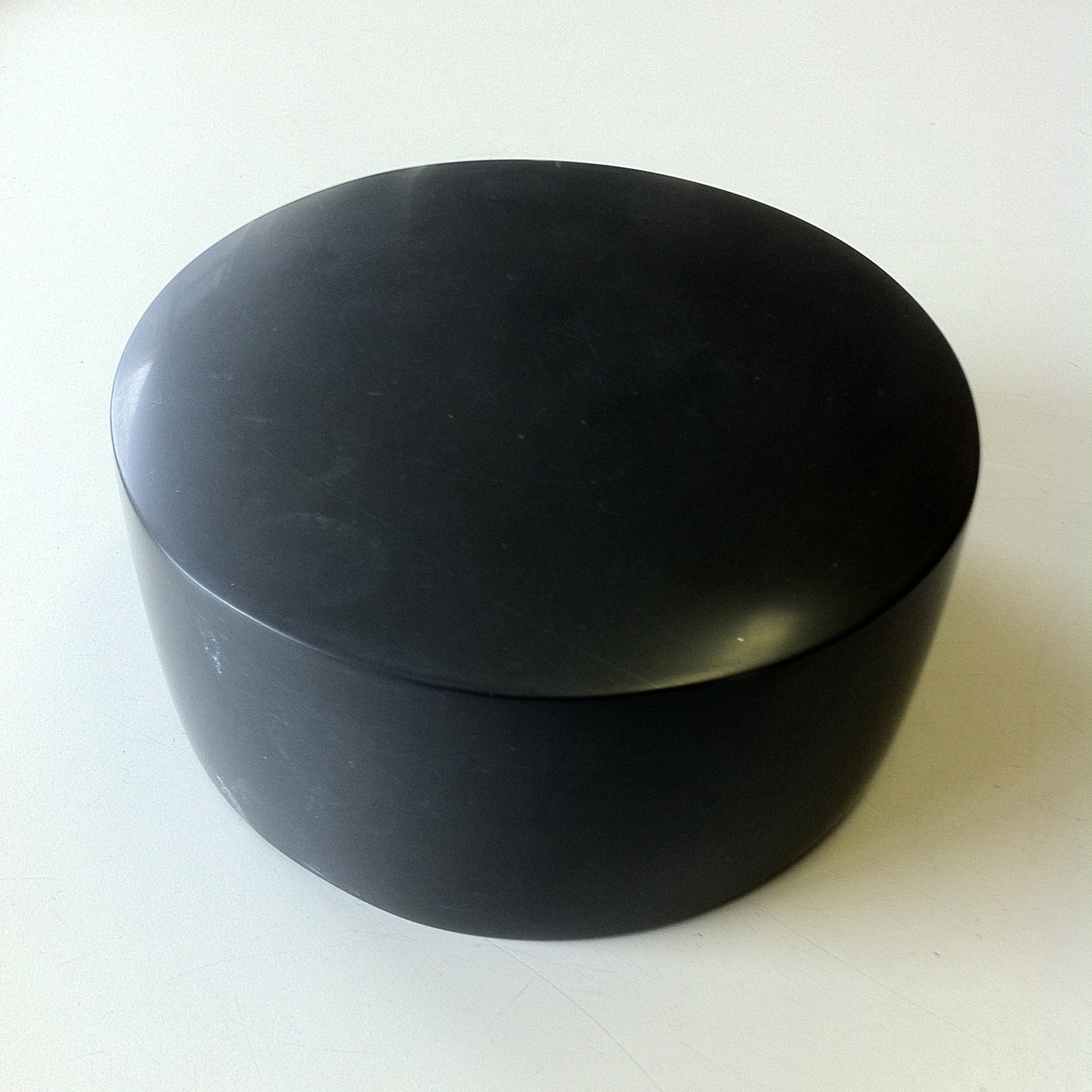 Op deze foto zie je de onderkant niet. Die is scheef en rust op een metalen pin. Jammer dat ik er geen betere foto van heb. De steen is Noir de Golzinne uit België.