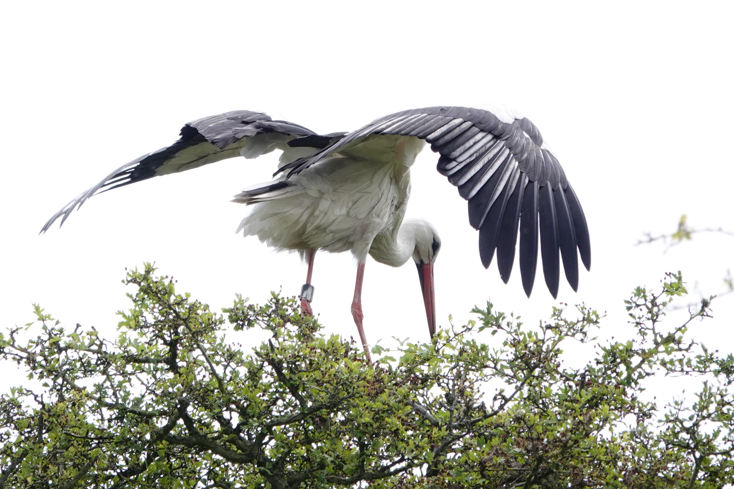 Boom Ooievaar Vliegen Vleugels Fladderen Poten Natuur Bessen Zomer Zon Wind Eten