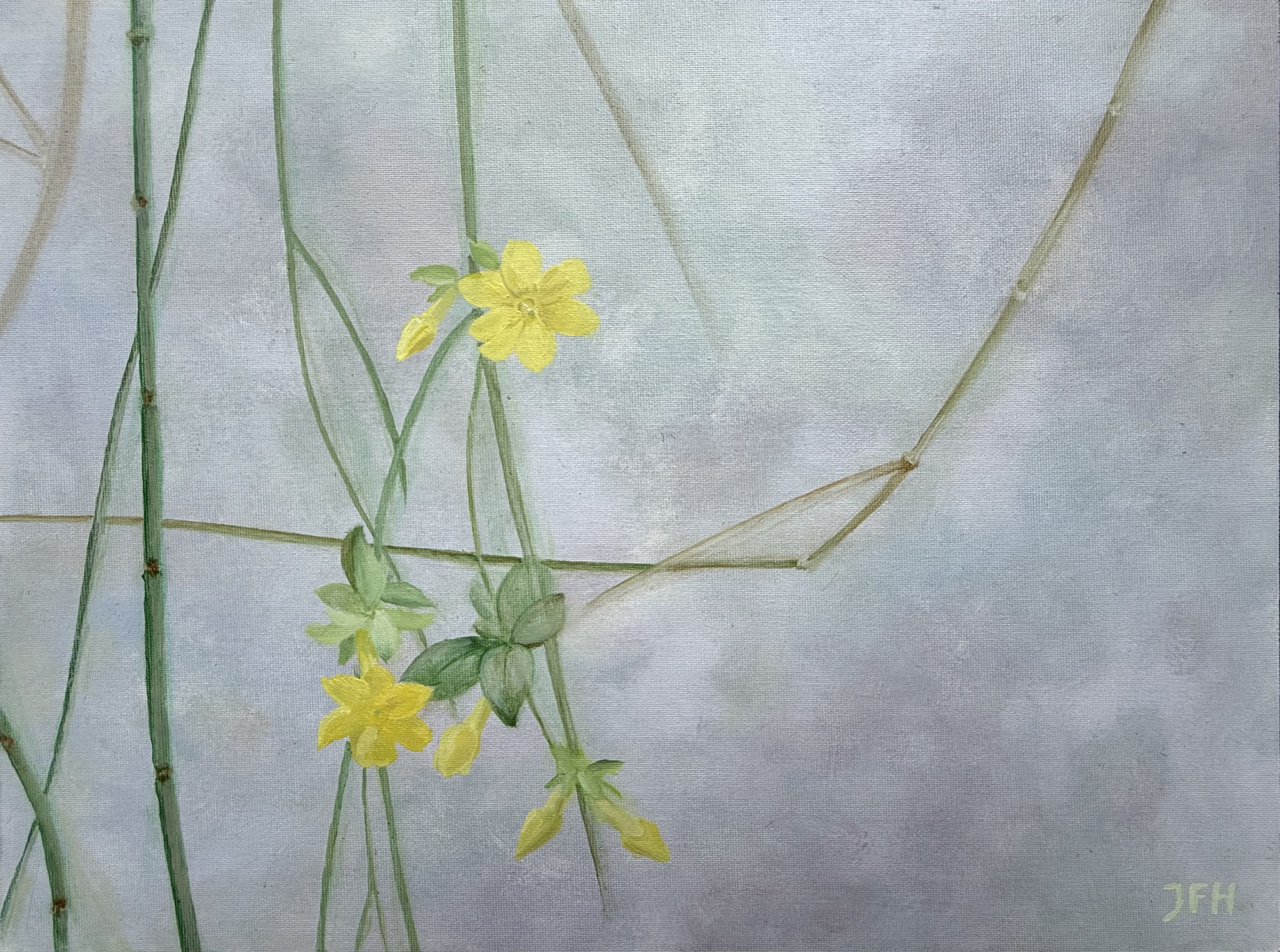 Schilderij Olieverf Bloem Winterbloem Winterjasmijn Houtgewas