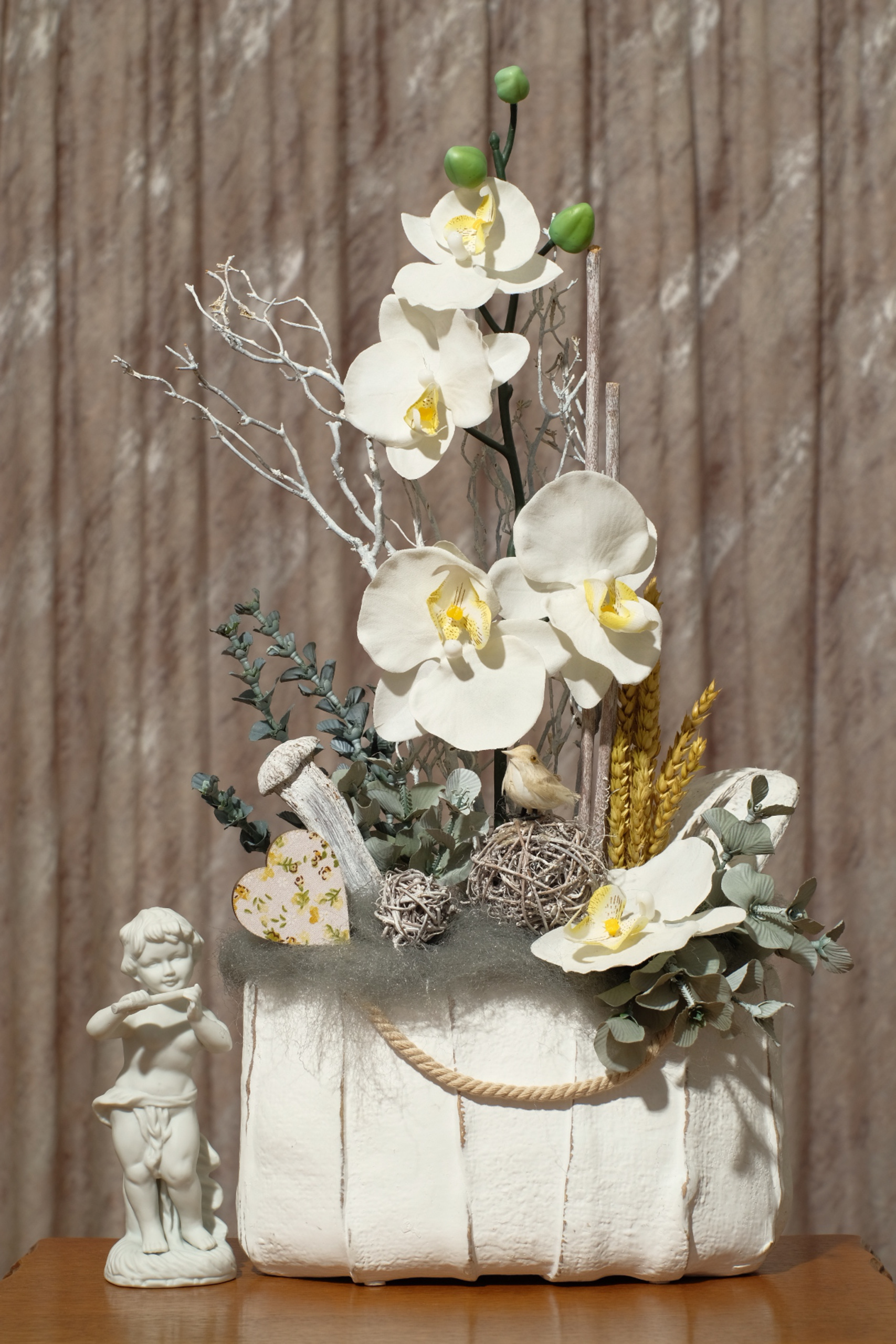 De spanning tussen schoonheid en kitsch, tussen waarde en waardeloosheid. Een esthetische dubbelzinnigheid met culturele ondertonen. Misschien zelfs een vorm van sociaal commentaar. De imitatie-orchideeën in het keramieken damestasje raken iets sentimenteels en onechts, en tegelijk iets oprechts — in hun eerlijke poging tot schoonheid.