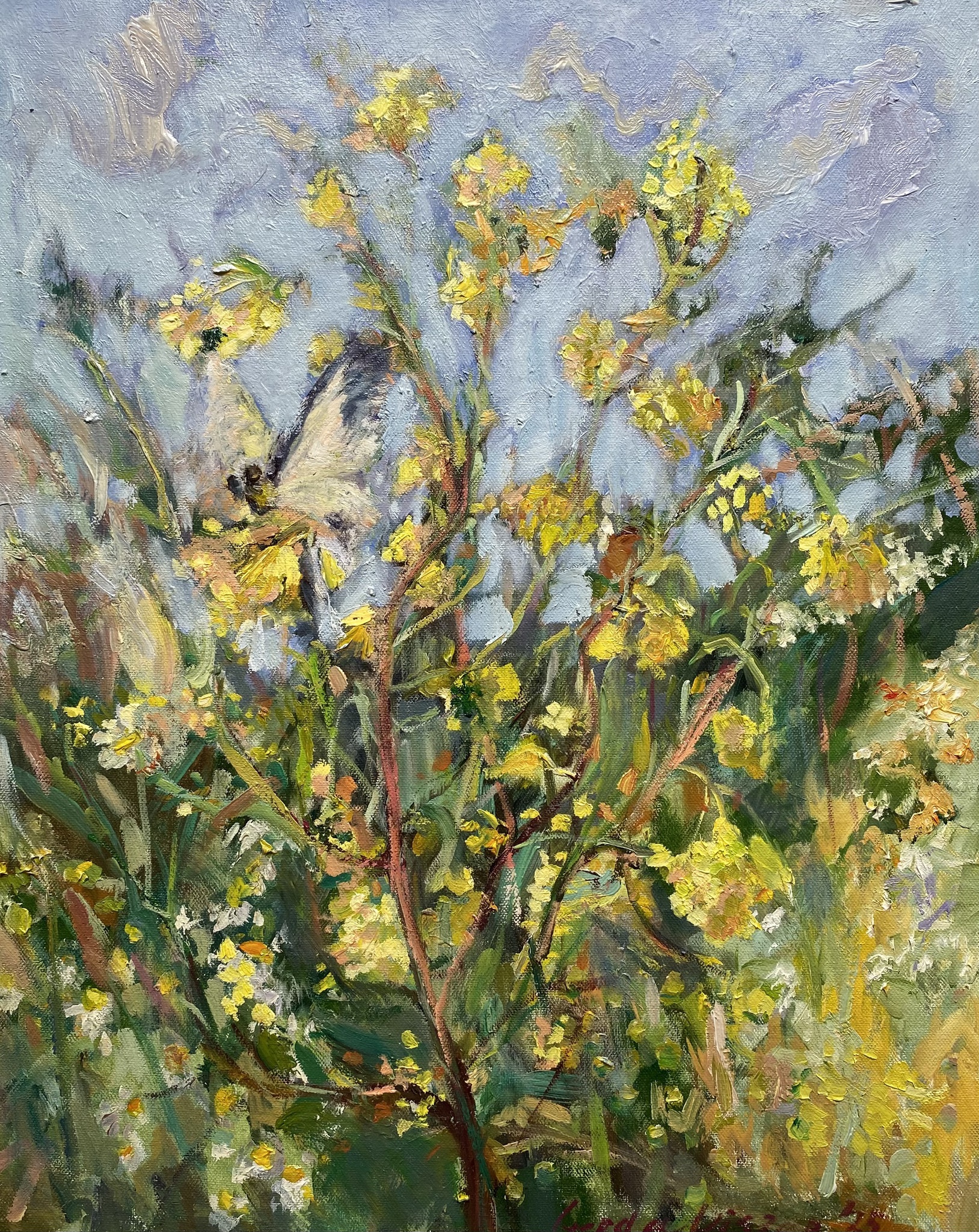 Vlinderdans in koolzaad (2025) Olieverf op doek | 40 x 50 cm