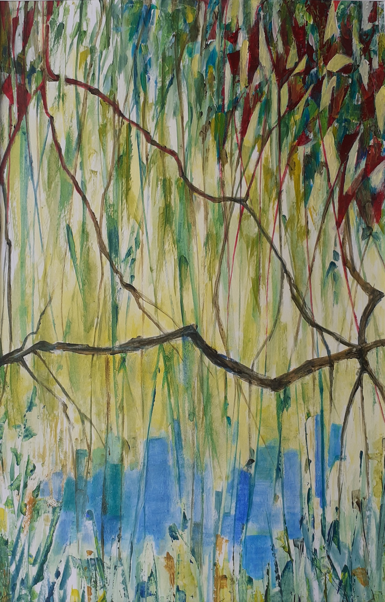 Wilgentakken boven de vijver van Cortils