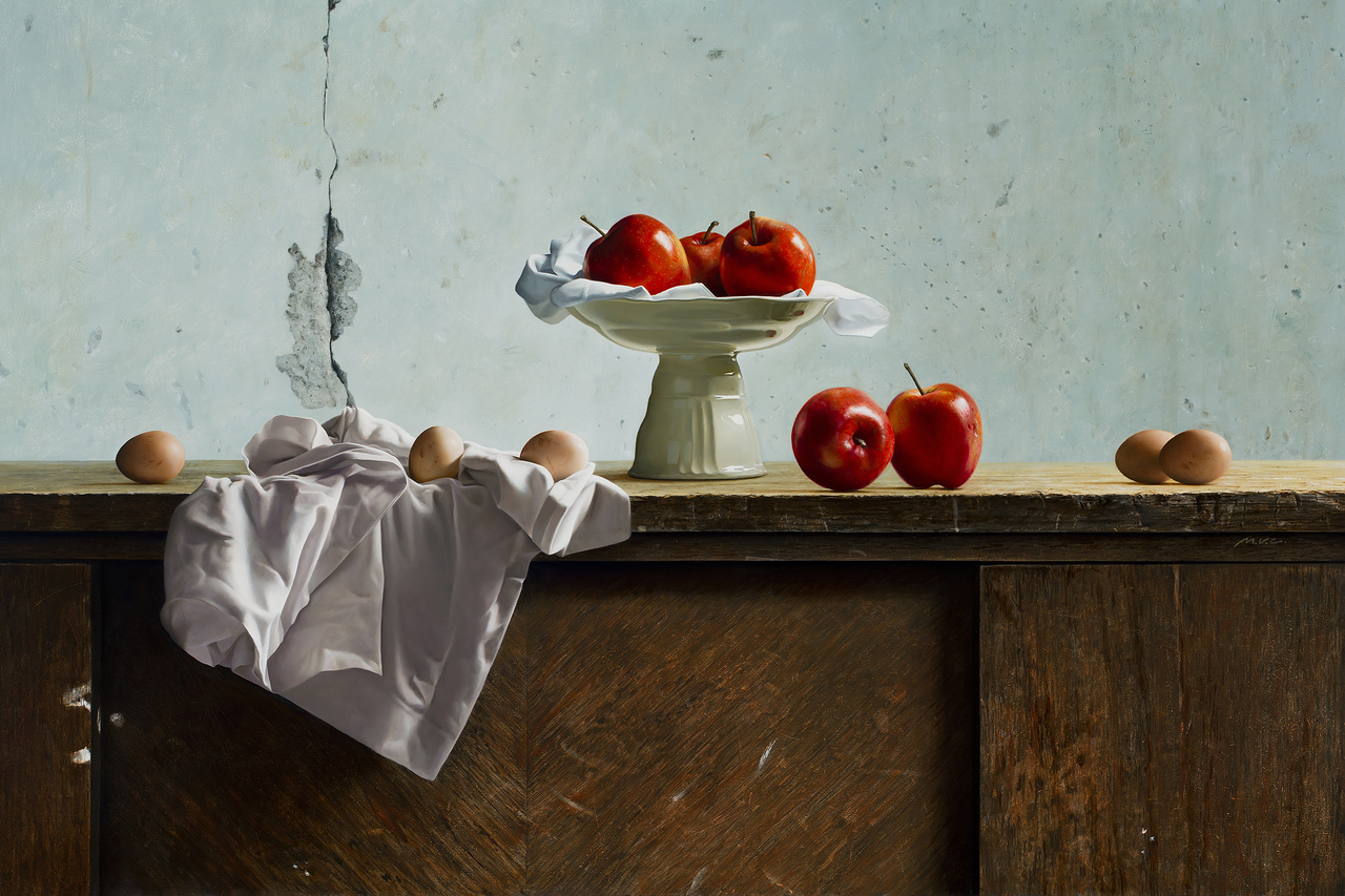 Oil On Still Life Eggs Panel Apple Photorealism Mvc