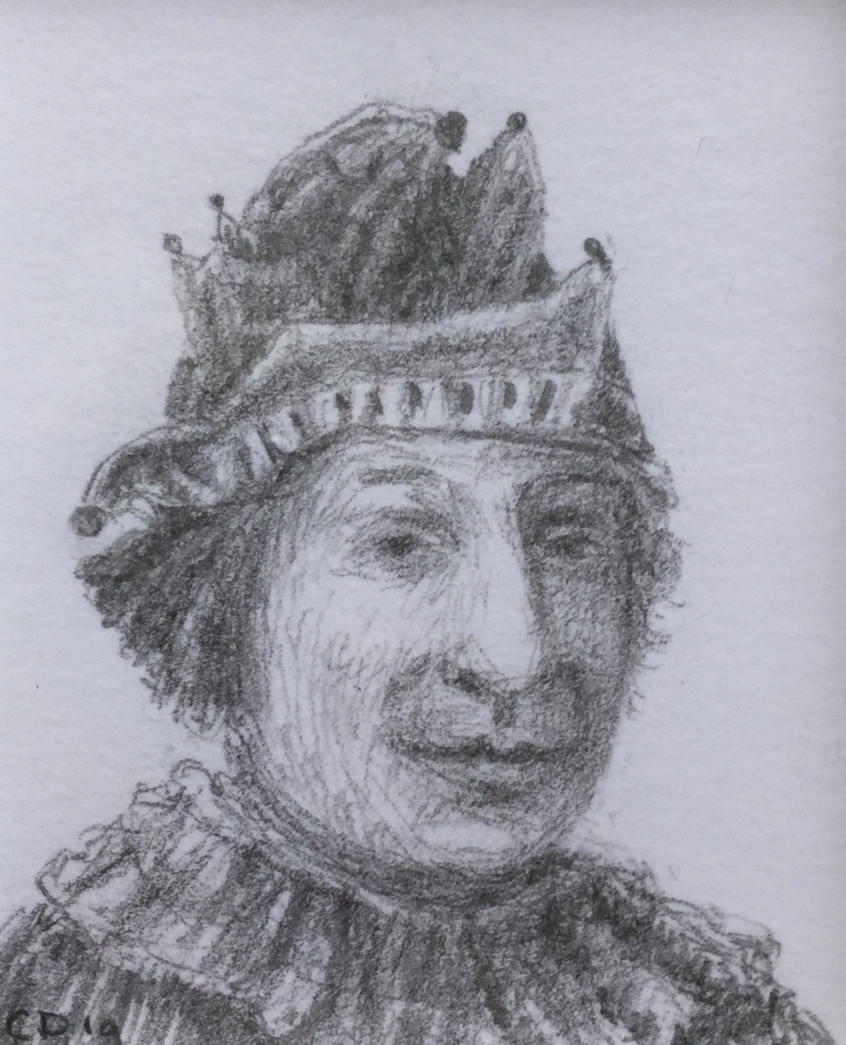 Portret Potlood Tekening Mens Fantasie Miniatuur Nar