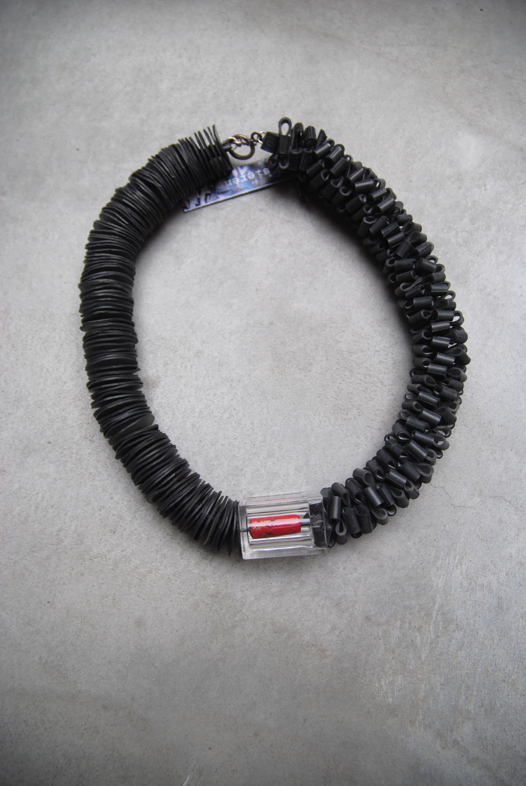Wij gooien waanzinnig veel weg in onze consumptiemaatschappij. Consuminderen is het uitgangspunt van Irene Pfennings. RUBBER en ander afgeschreven materiaal inspireert haar tot het maken van onder andere sieraden onder de produktnaam SIERENE.