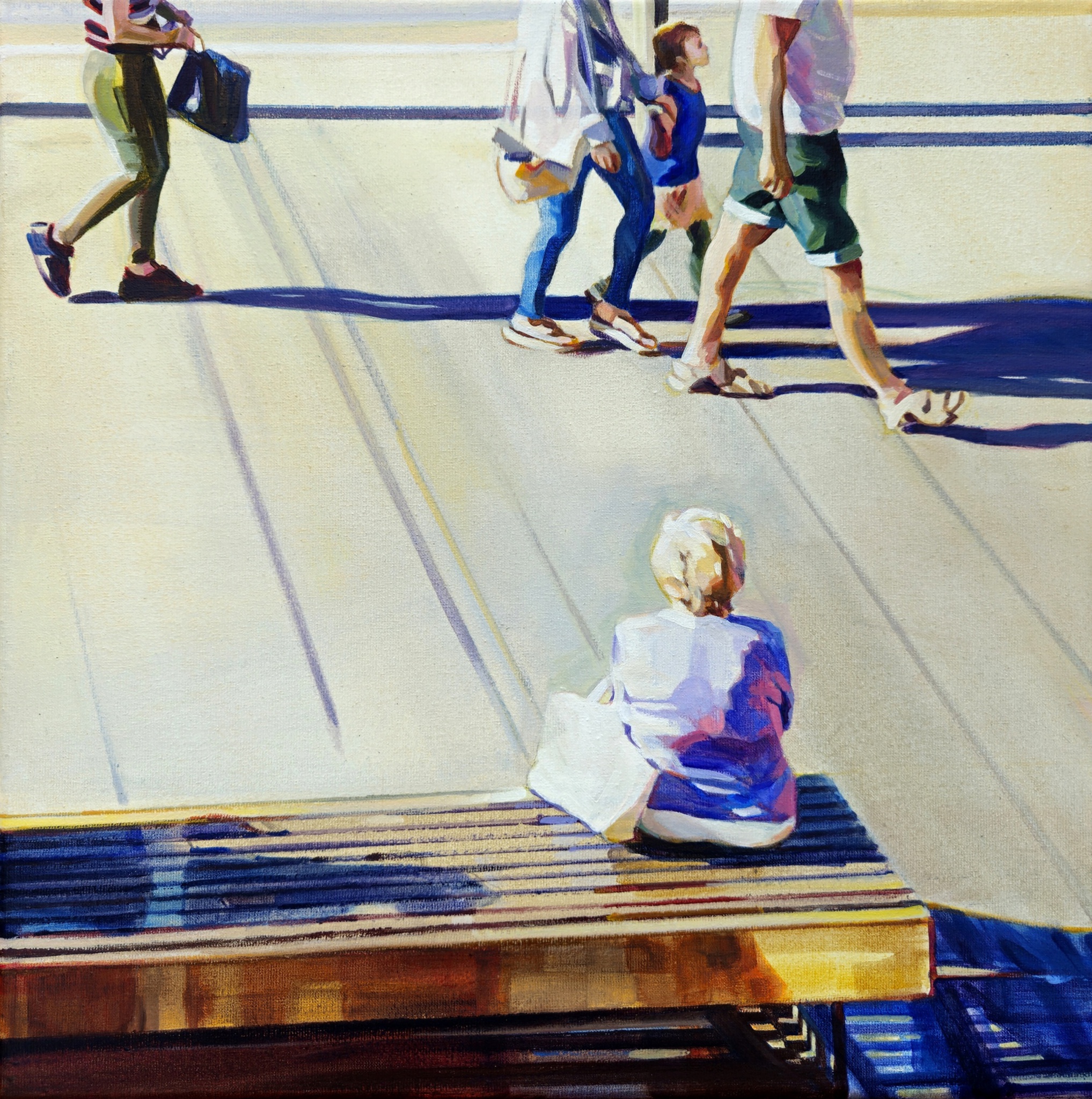 Christel Weyts maakt acrylschilderijen over de mens en zijn leefomgeving. Ze filtert taferelen die vooral het esthetische en de harmonie in een situatie willen benadrukken. Ze houdt aparte composities vast binnen de grenzen van het canvas. Licht en beweging zijn hierbij vaak belangrijk.