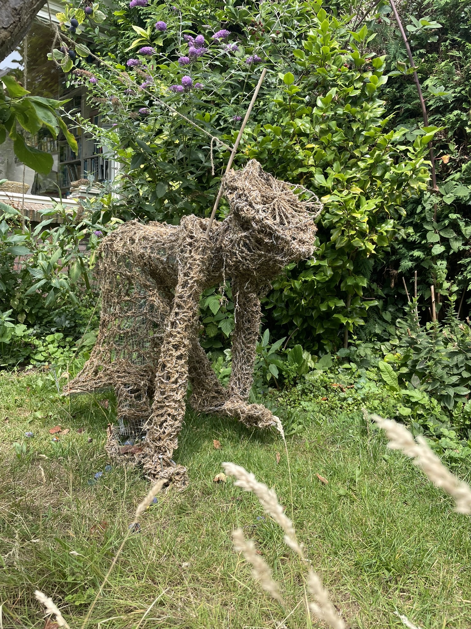 Op de korenakker plaats ik een paard, vos en de man met de zeis en een arenleester. De arenleester is gemaakt van gevlochten gras