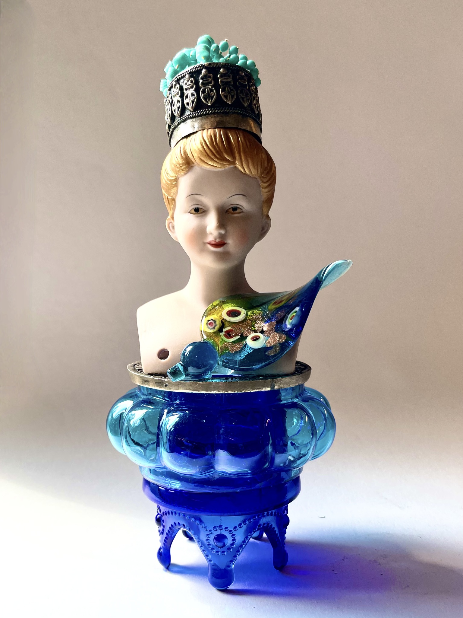 Dit porseleinen poppenhoofdje heb ik een nieuw leven gegeven. Assemblage