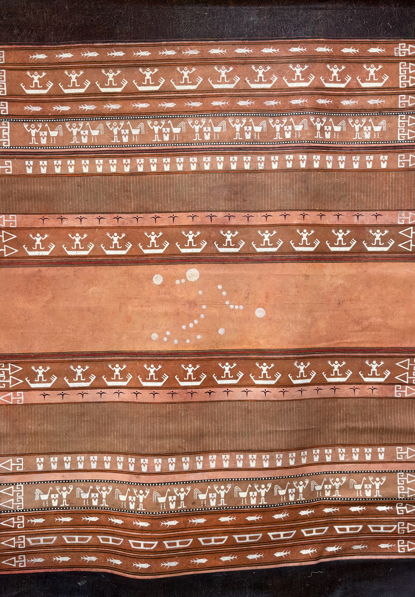 Beta berlayar jauh = Ik vaar/zeil ver van huis, titel ontleend aan traditionele Molukse lied. Donkere randen (boven en onder) zijn delen van het doek. (banier)
