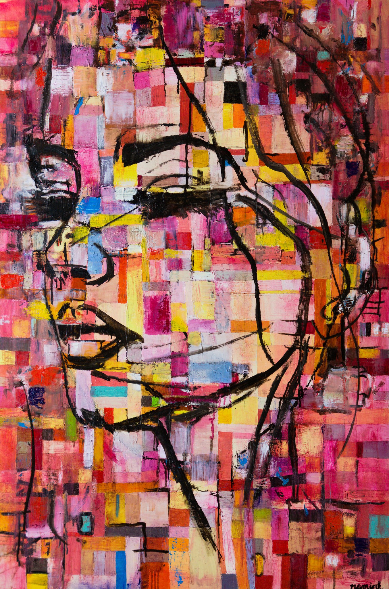 Vrouw Portret Roze Rood Groot Abstract Pop Art Modern Olieverf Minimalistisch