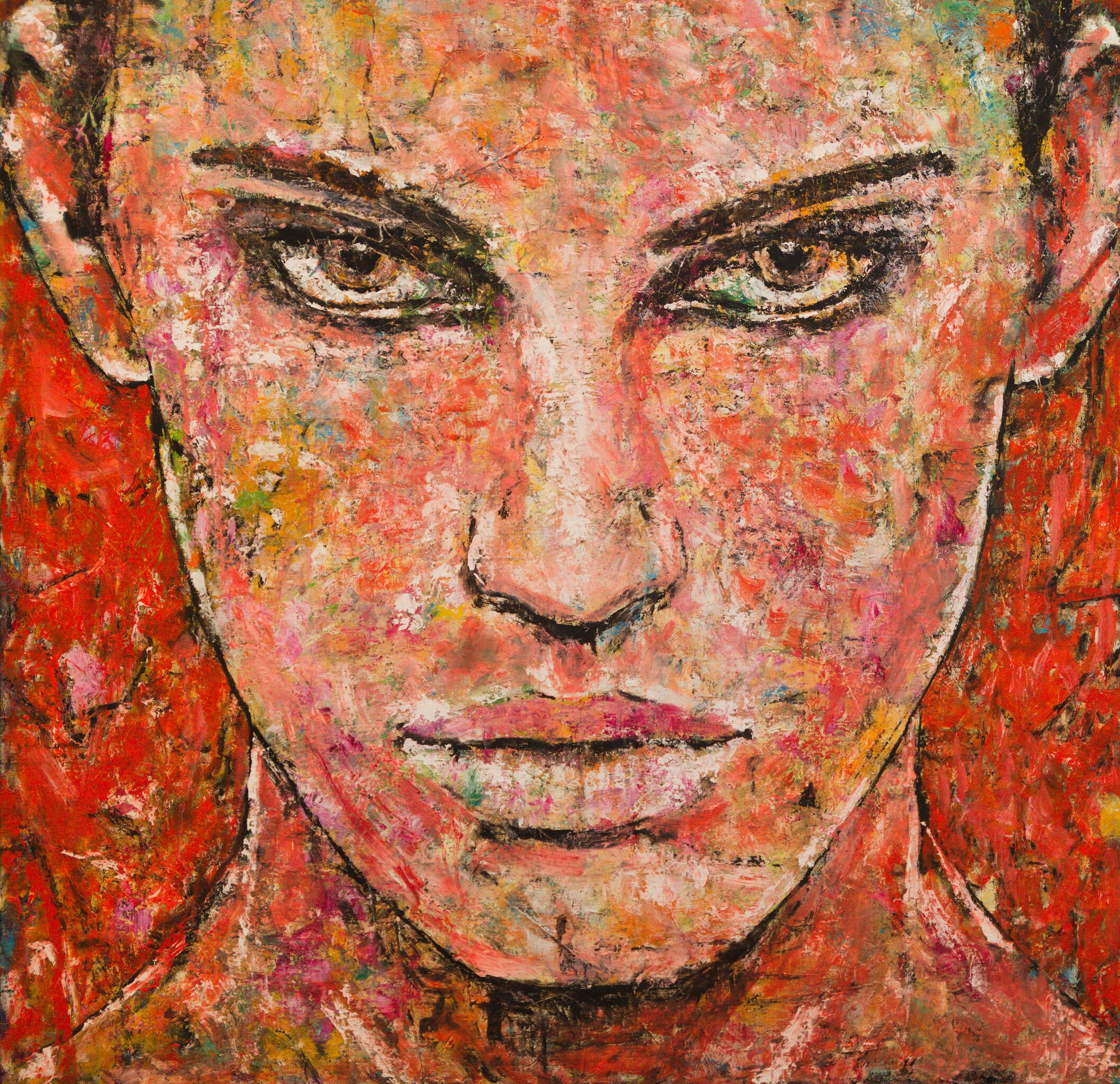 Modern Rood Oranje Expressie Vrouw Gezicht Strak