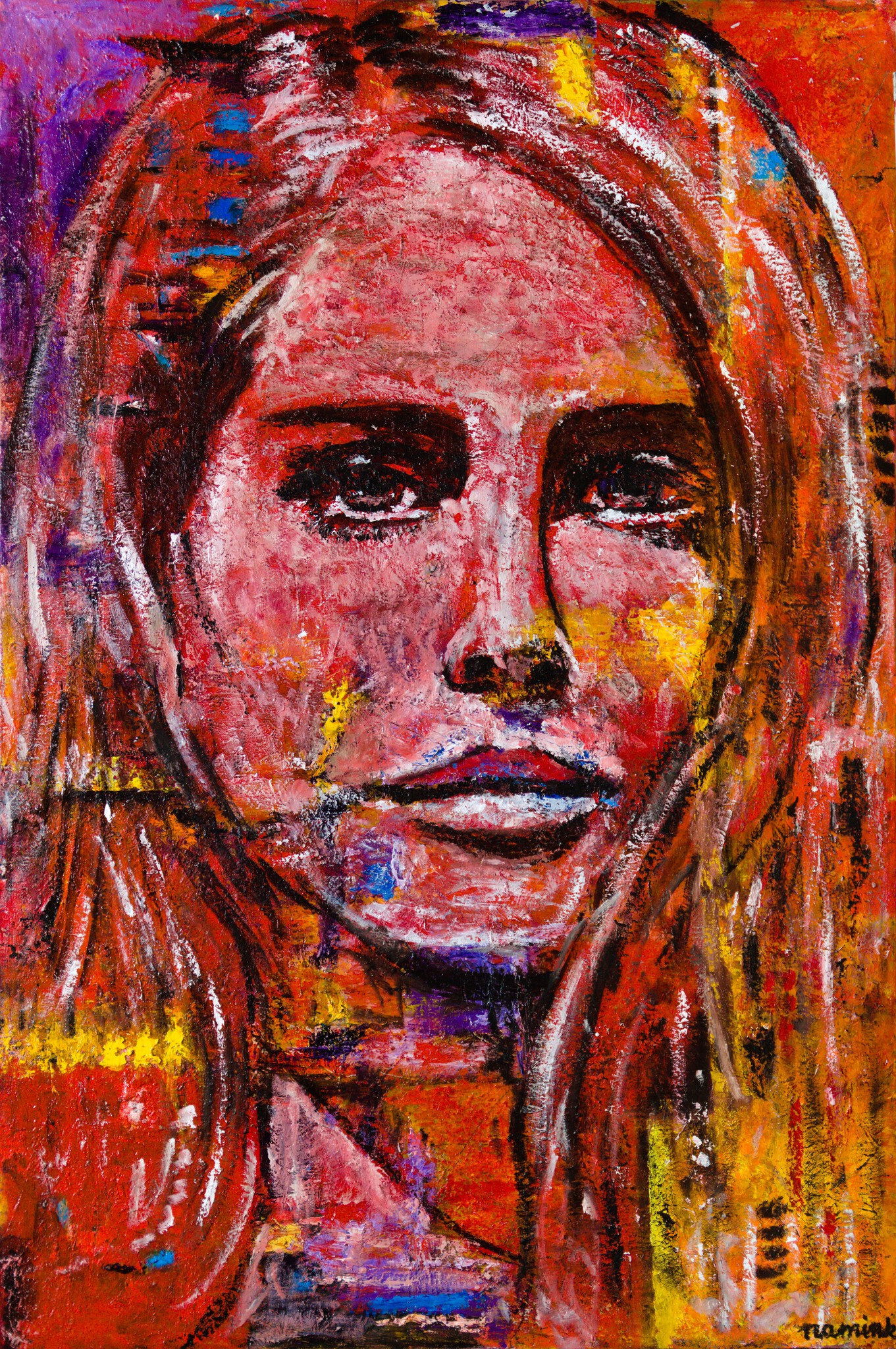 Lana Del Rey Portret Rood Groot Abstract Modern Abstraherend Zangeres