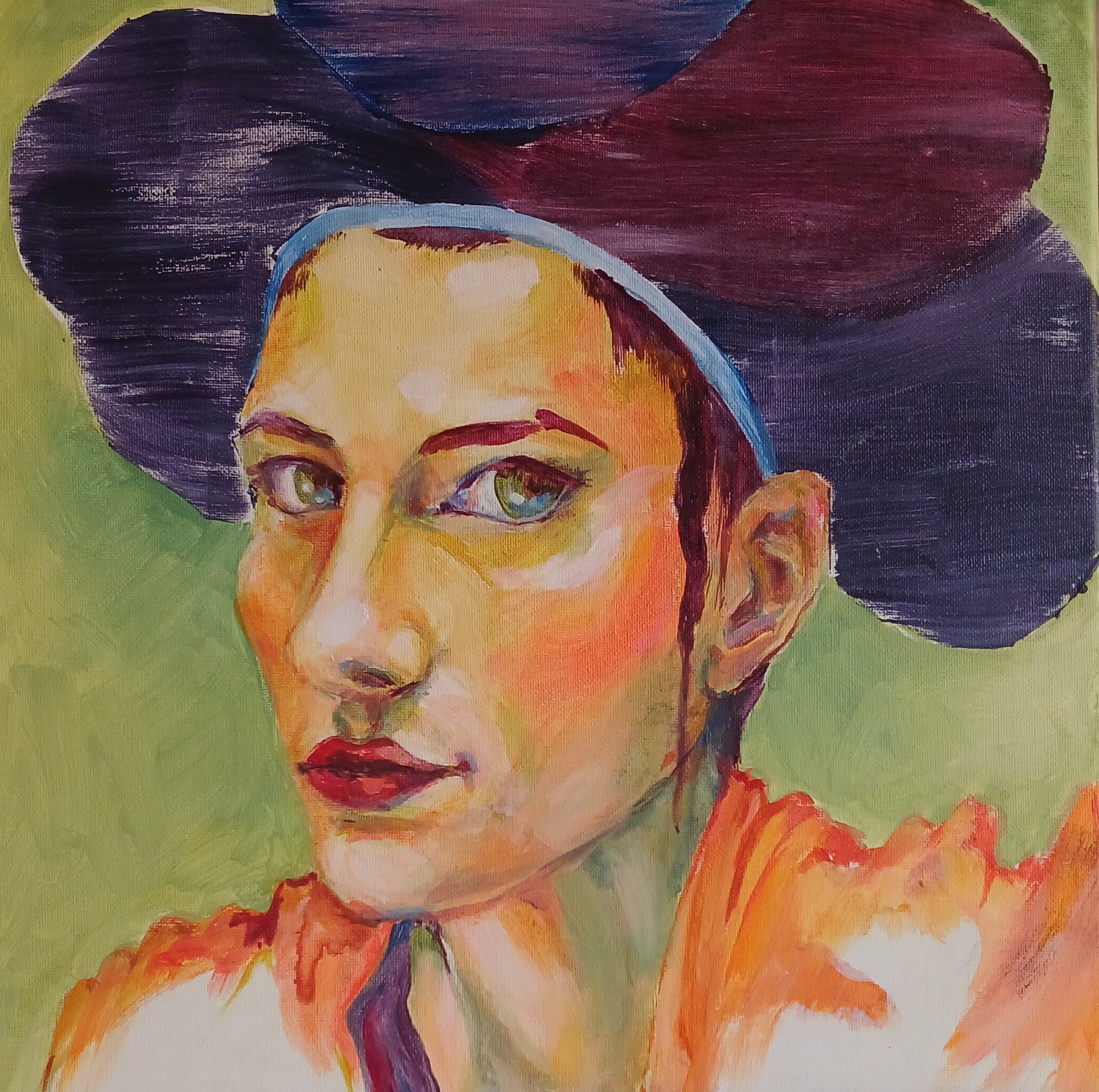Portretje 7, onderdeel van een reeks, waarin ik op verschillende manieren portretjes weer wil geven. Met afplaktechniek.