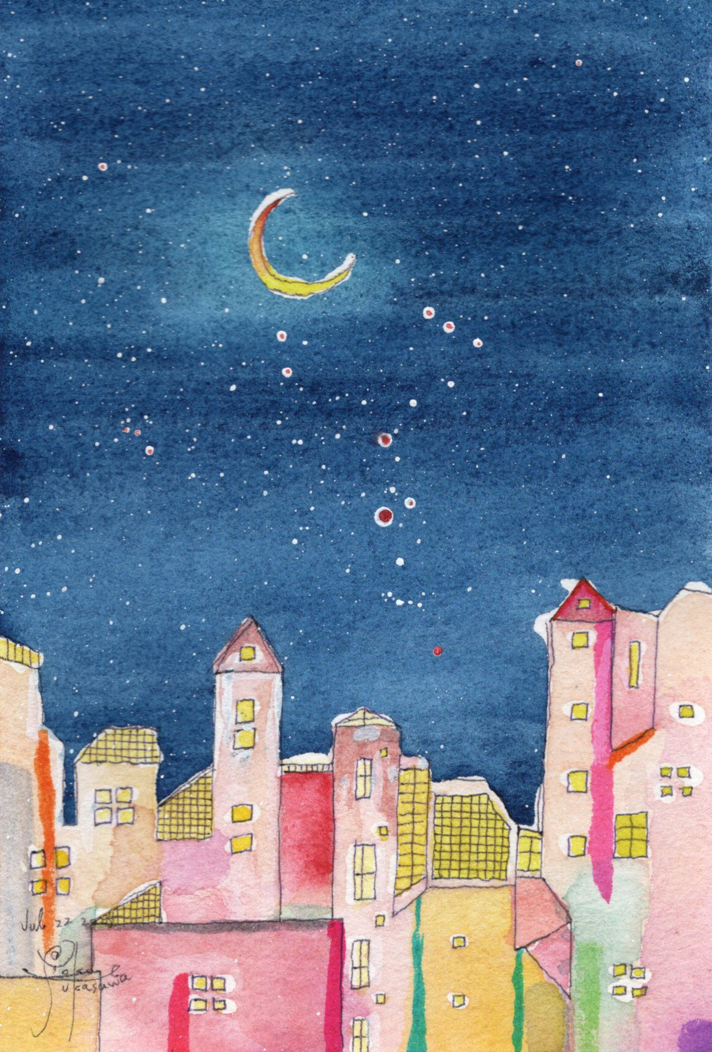 Yoko Fukasawa was born in 1982. 2001-Japan traditional craft department,Metal crafts major 2001-Volkswagen new Beetle - art contest The third place. 2002-TOKYO DOME - Tableware festival Fine work. 2017-And Schizophrenia has been revealed. Her paintings are outsider art. They are characterized by simple shapes and bright colors. She wants you to look at them and relax.