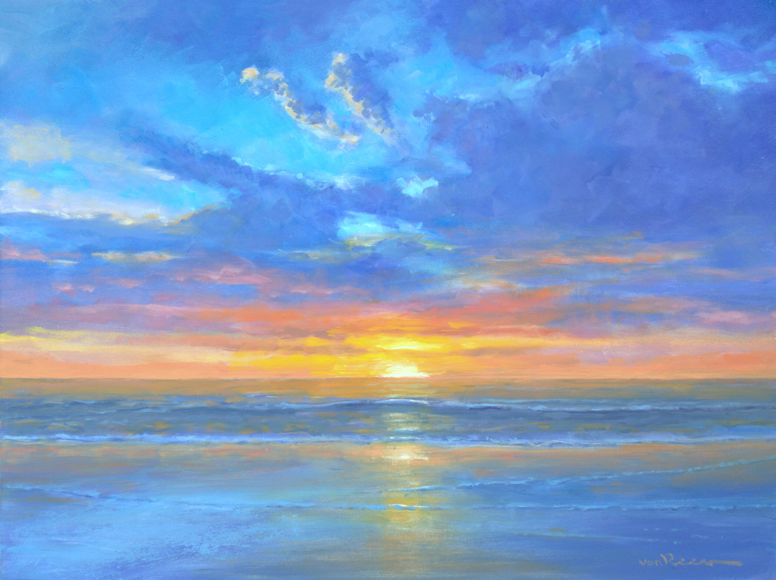 Roeland van Reem schildert met olieverf op linnen of op paneel . Belangrijke thema's zijn; bloemstilleven, strand, zee, sneeuw- en polderlandschap.