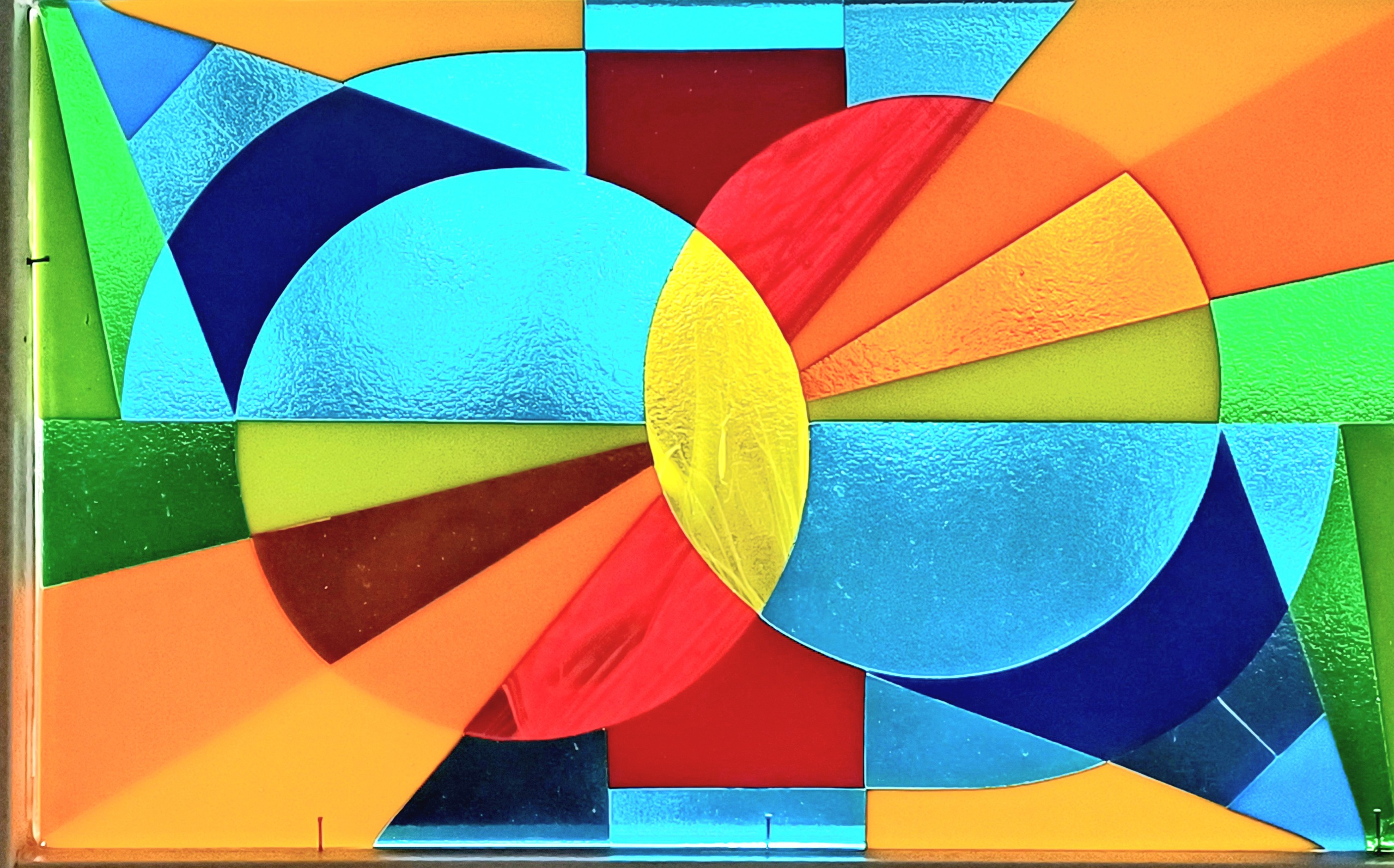 Gemaakt door de glasstukken met de koude kant tegen elkaar te plaatsen.