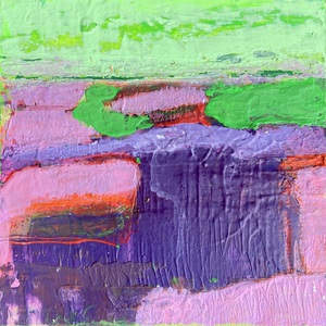 Het landschap is mijn grootste inspiratiebron. In de zomer heb ik veel buiten geschilderd. Mijn landschappen zijn kleurrijk en sterk geabstraheerd. Op het moment zijn mijn landschappen abstract.